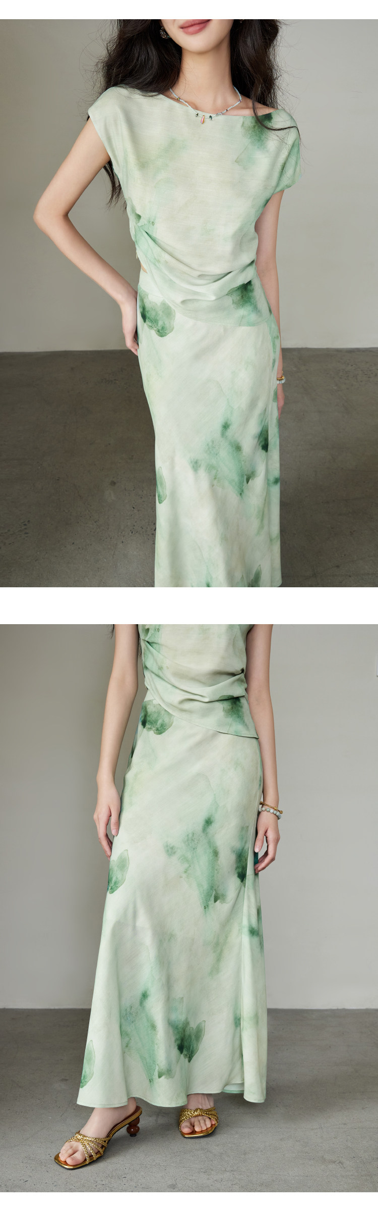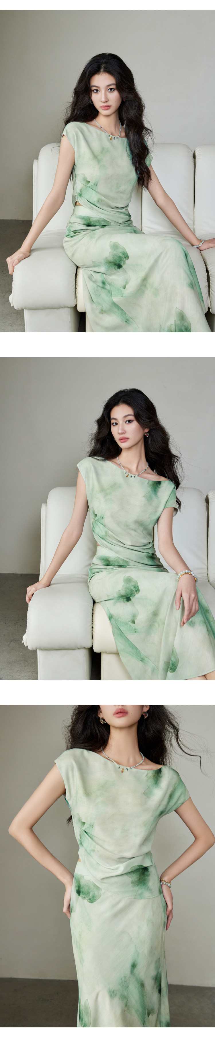 衣服擺較短,高腰長裙的搭配拉長身材比例
