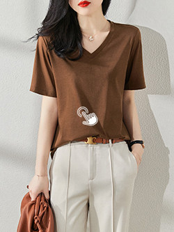 膠印印花T恤短袖上衣 | 免燙V領直筒打底短袖T恤 | 百搭純色短袖打底T恤女 |