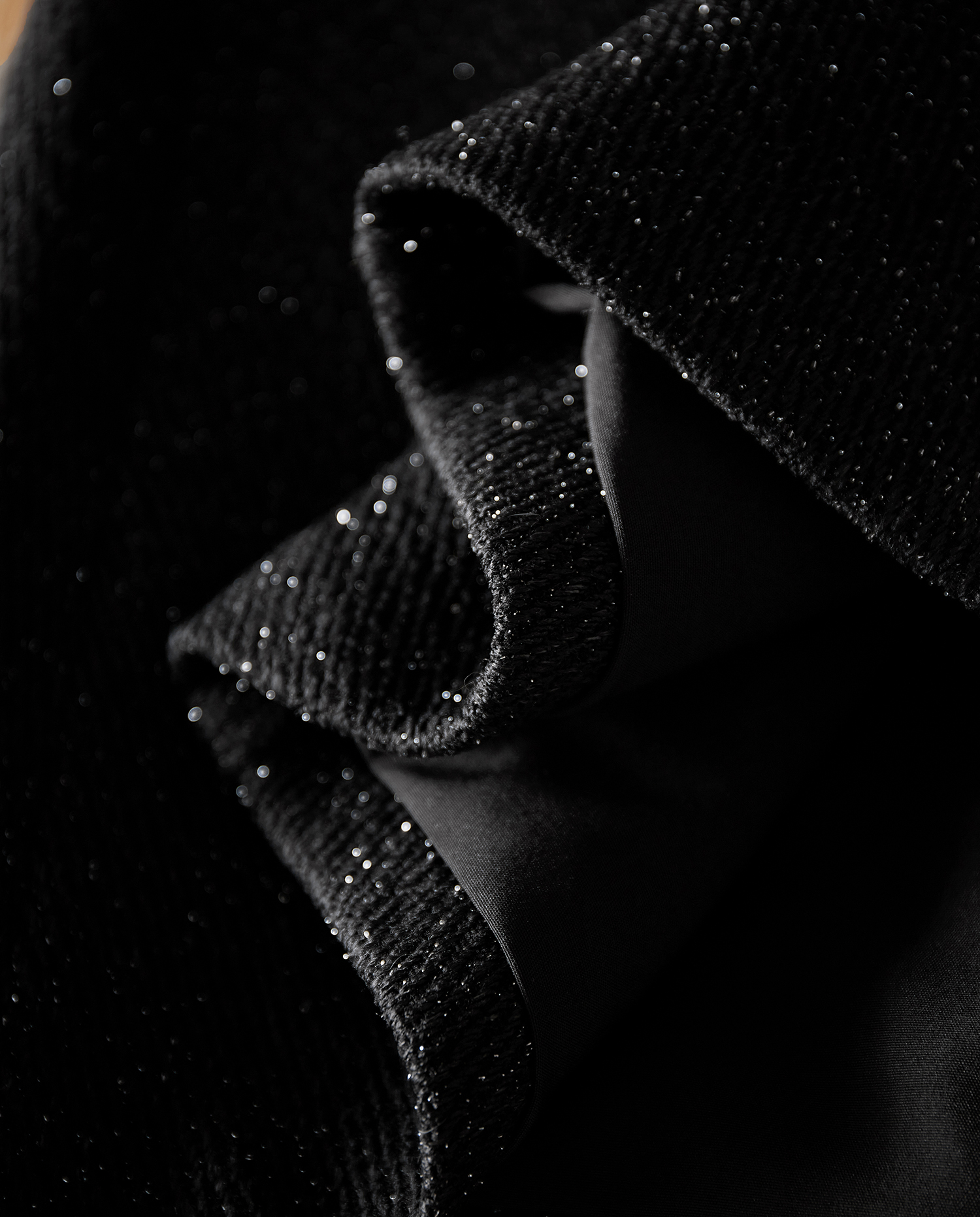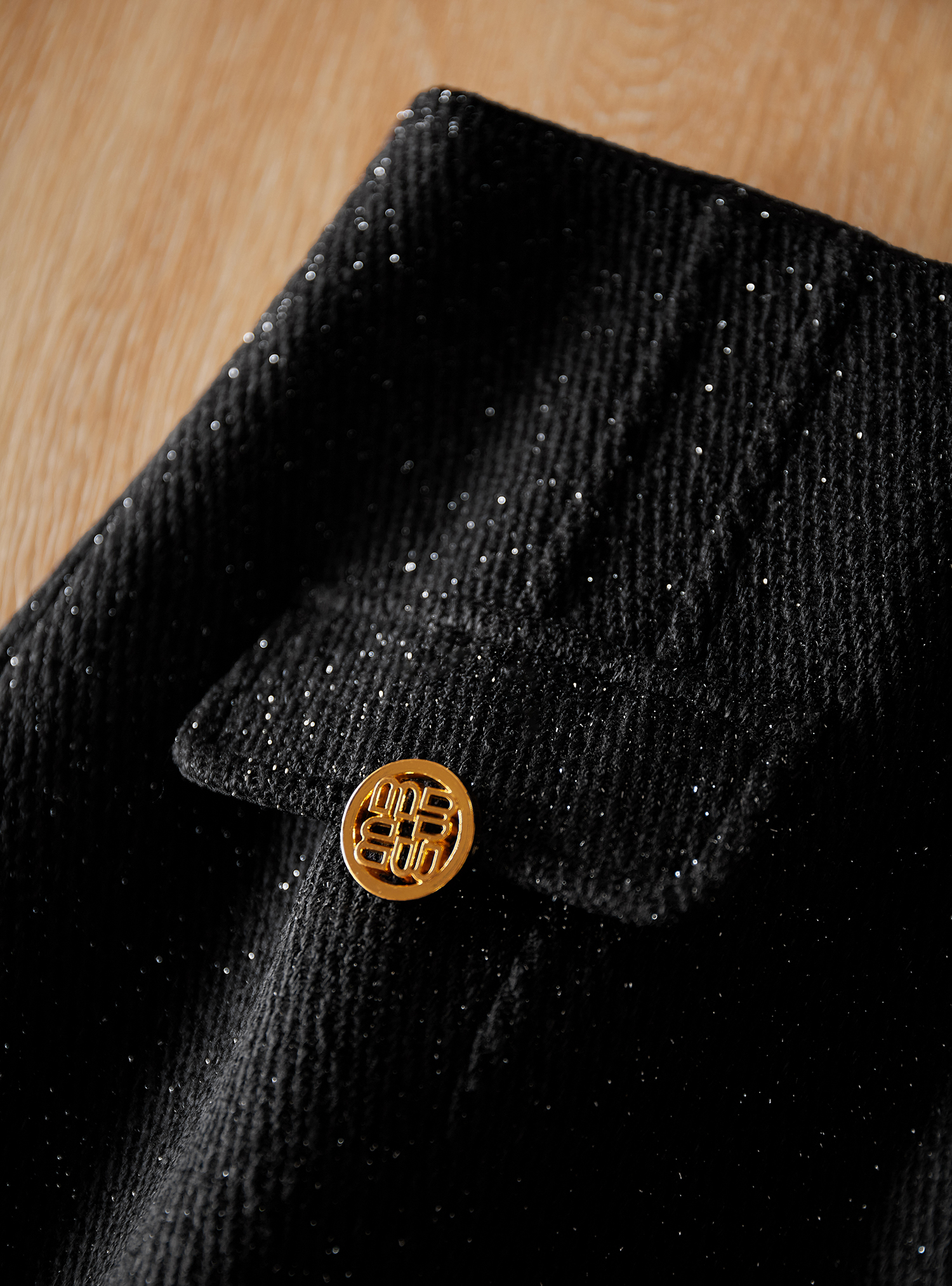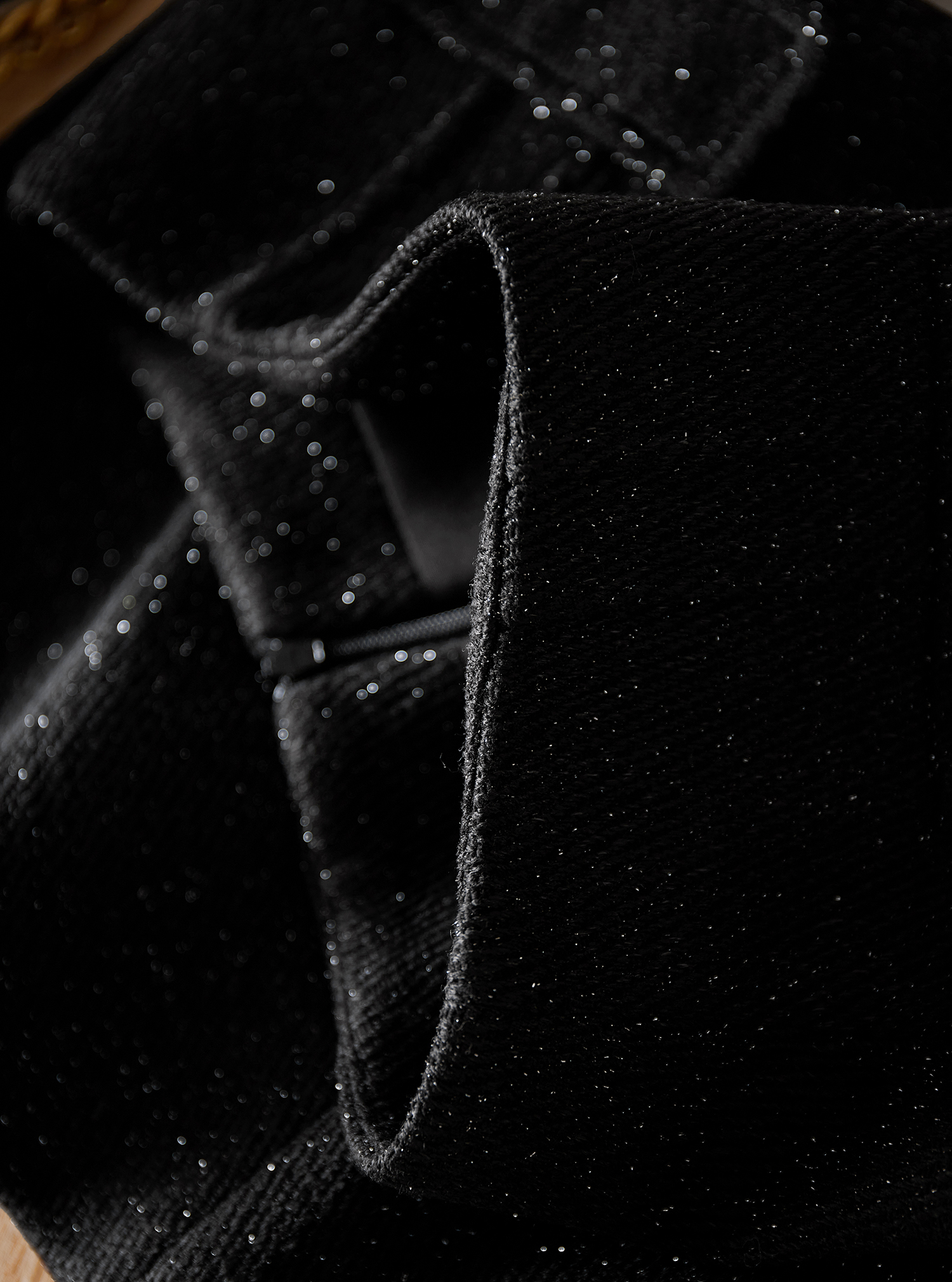 采用了細閃的幻彩面料,讓黑色不過于濃郁