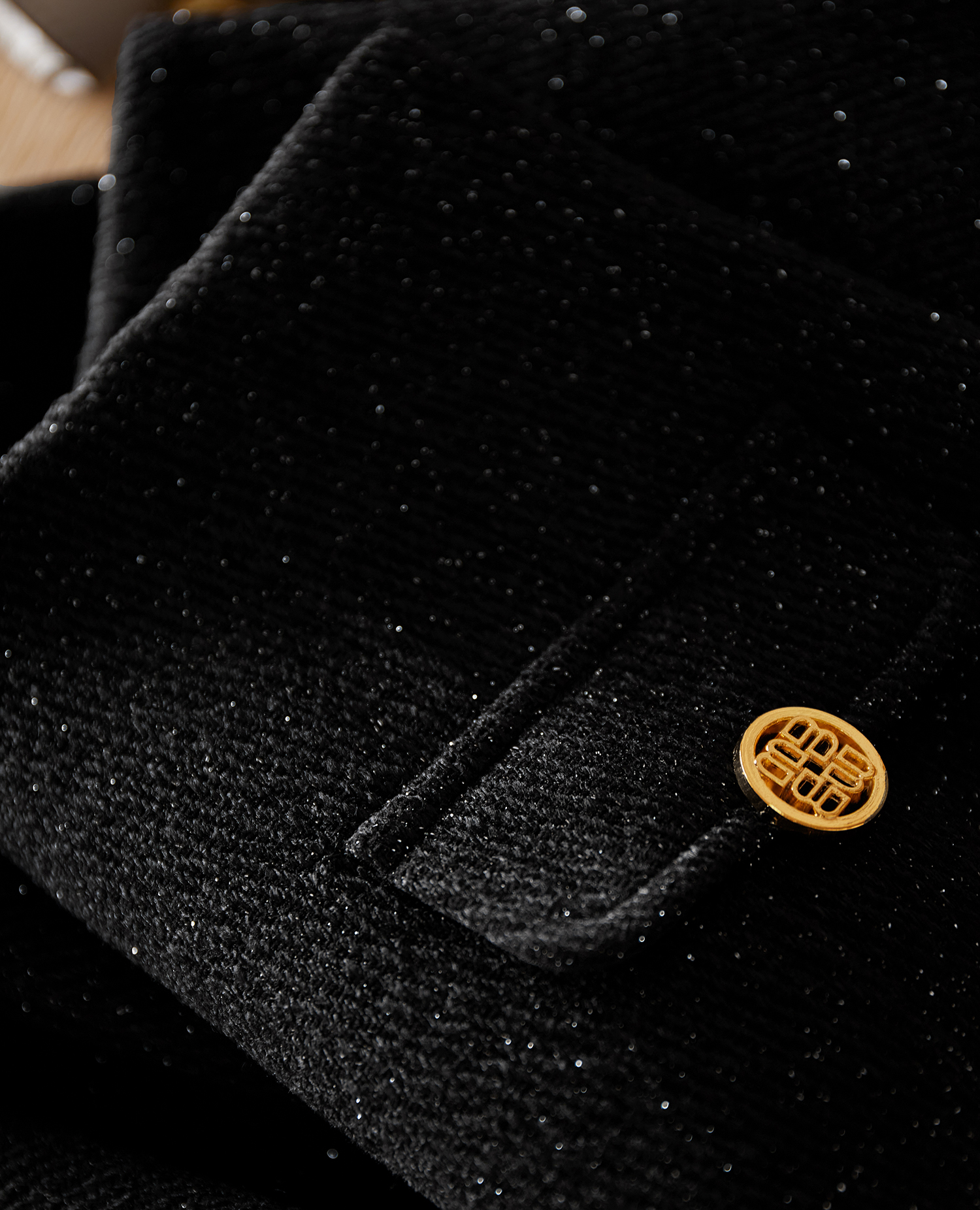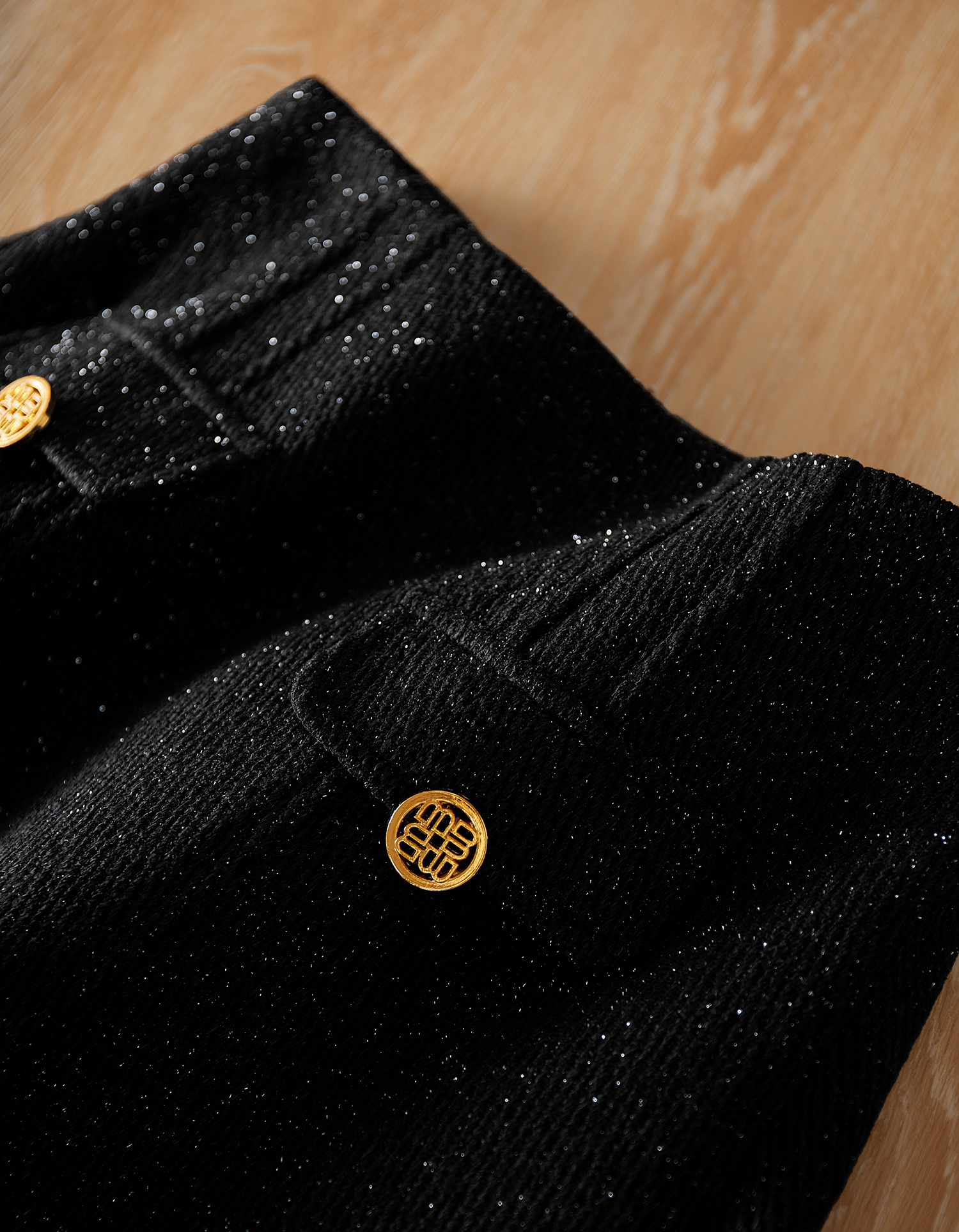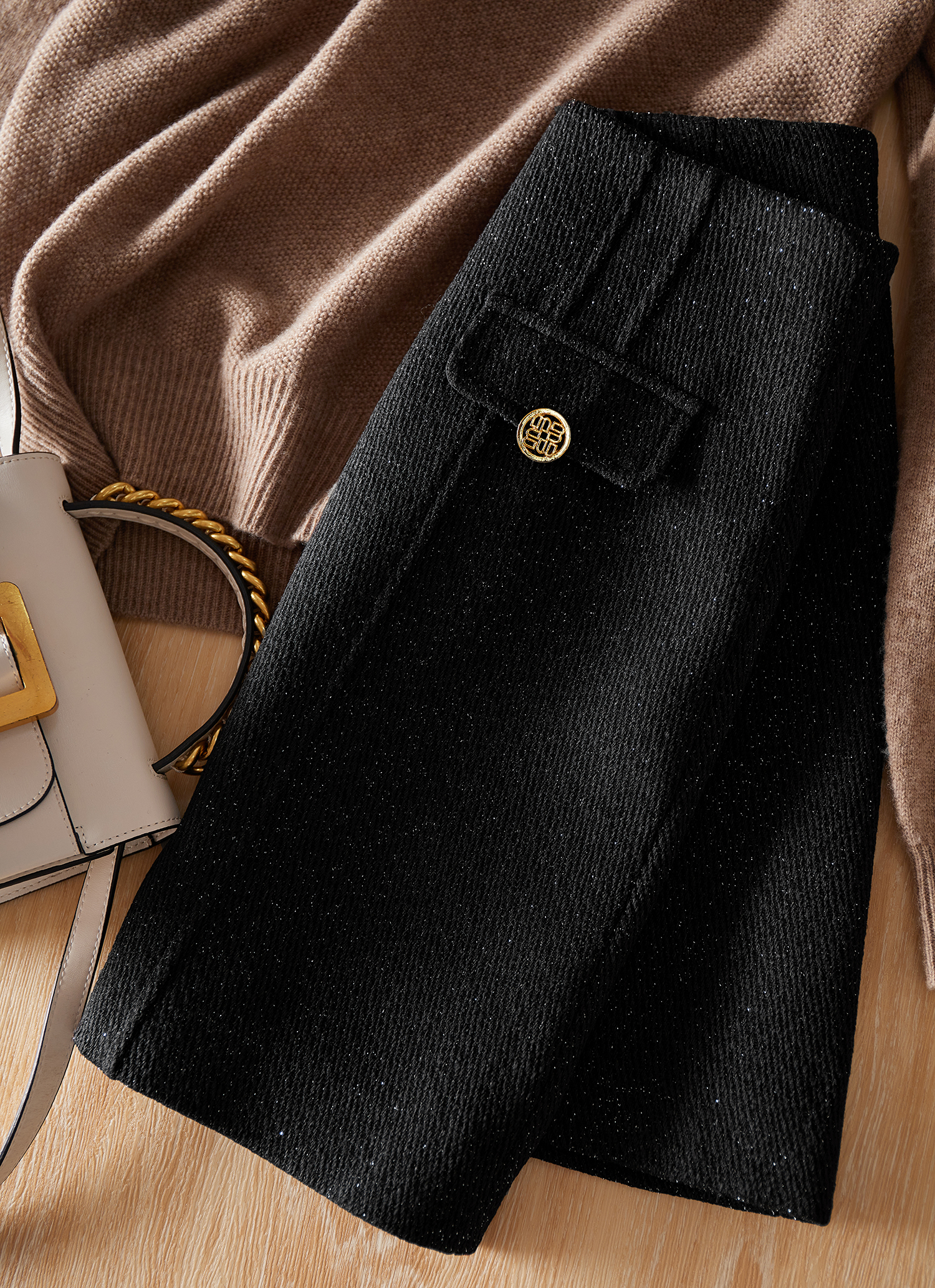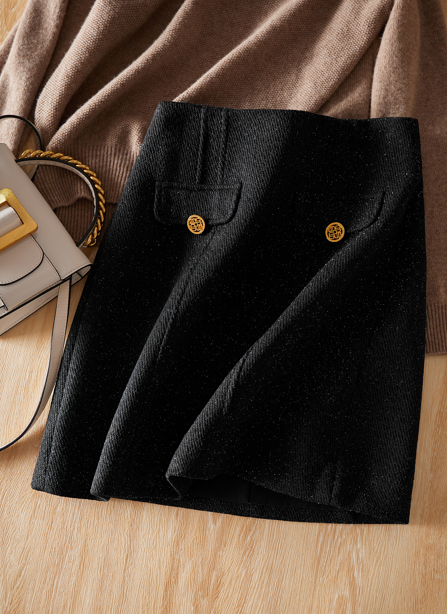 采用了細閃的幻彩面料,讓黑色不過于濃郁