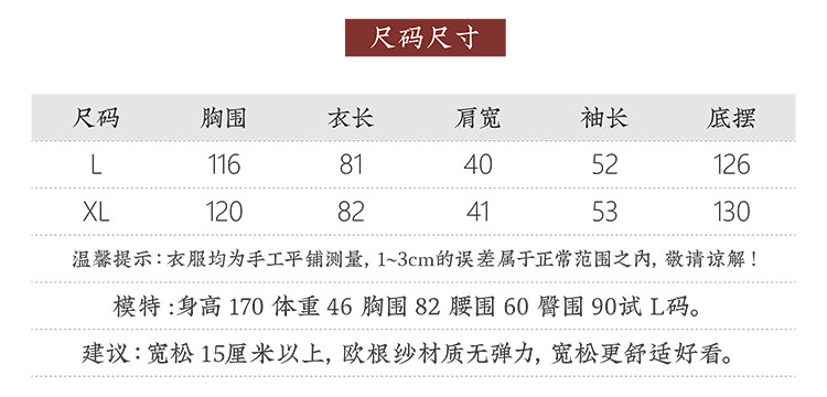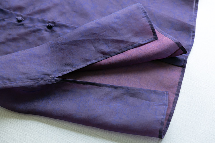| 面料:桑蠶絲真絲紅云紗(真絲歐根紗底胚) 注意:每一批花紋都不同,介意慎選。 國風新中式風的襯衫,又可以做遮陽衫來穿, 氣質非常出眾的一款! 采用真絲歐根紗制作的紅云紗面料, 顏色典雅貴氣,面料輕薄透氣,挺闊有型, 下移的小立領,點綴一顆中式一字扣, 穿起來舒服又顯氣質, 可以搭配吊帶或者抹胸,也可以搭配背心裙來穿。 薄透的面料下微微透出細膩的肌膚,帶來清涼感。 需要注意的式,因為真絲歐根紗屬于生絲綢類, 所以一定謠避免用力的去擠壓或者擰絞, 這樣有可能會留下熨燙也無法完全消除的死褶, 敬請留意這點哦! |