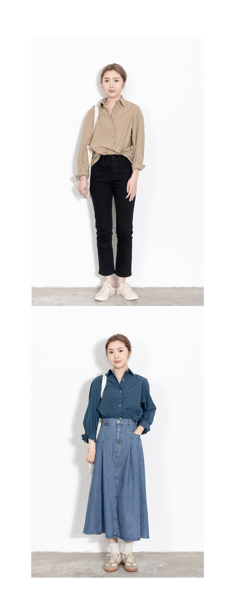 純棉 小挺括的面料 顯瘦百搭 直筒寬松的板形 顏色很好看 日系復古 基本款 可以配褲子或裙裝 做工很好 推薦款