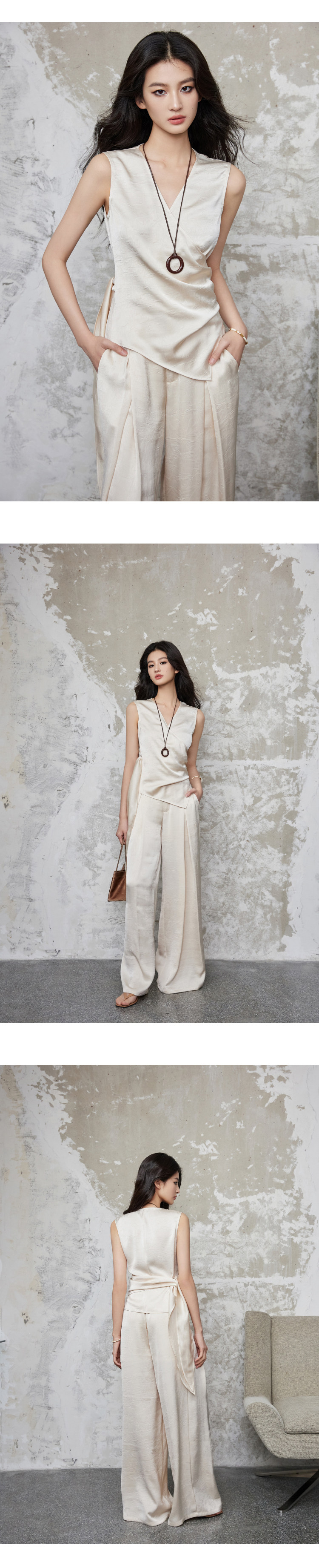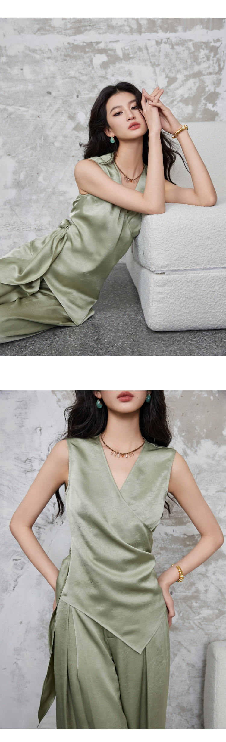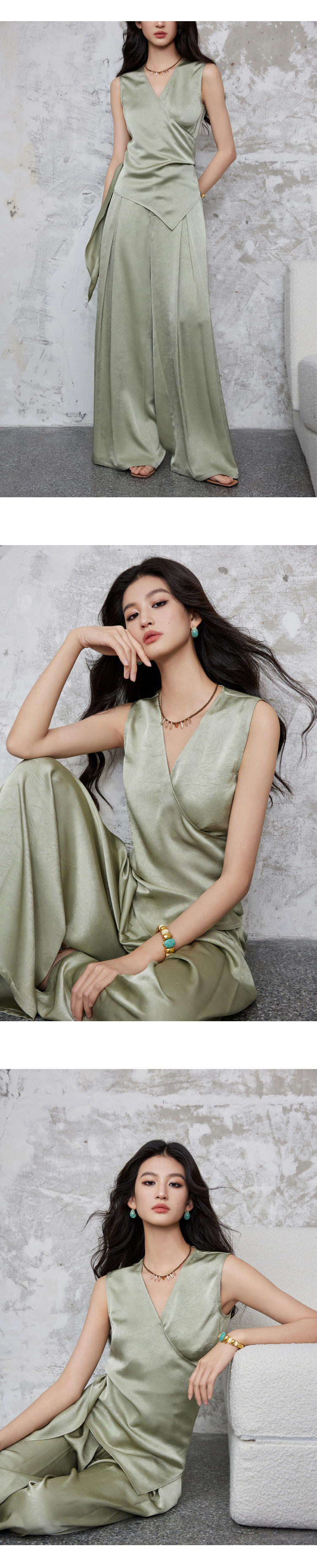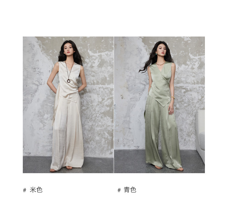 手工捏褶皺交叉疊搭形成V領,