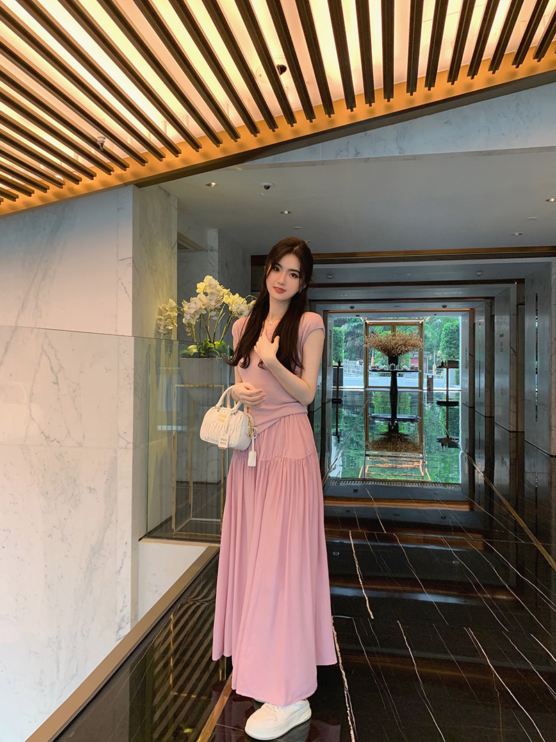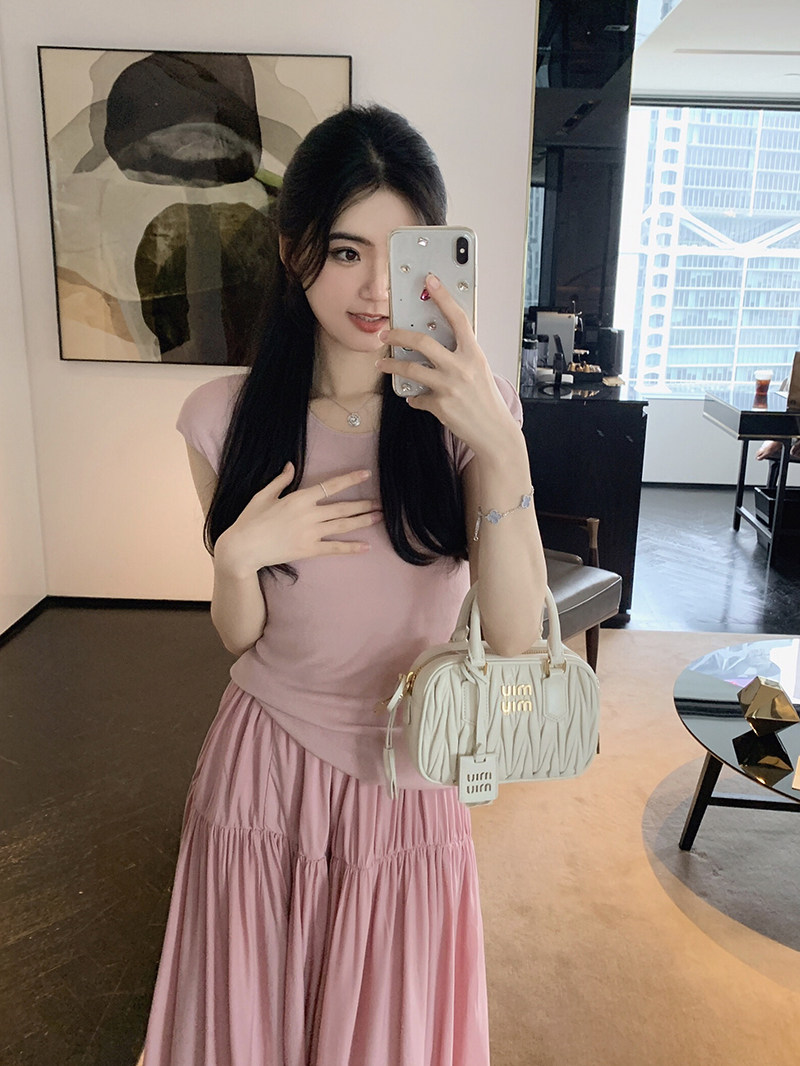裙身微微壓褶凸顯整體層次感