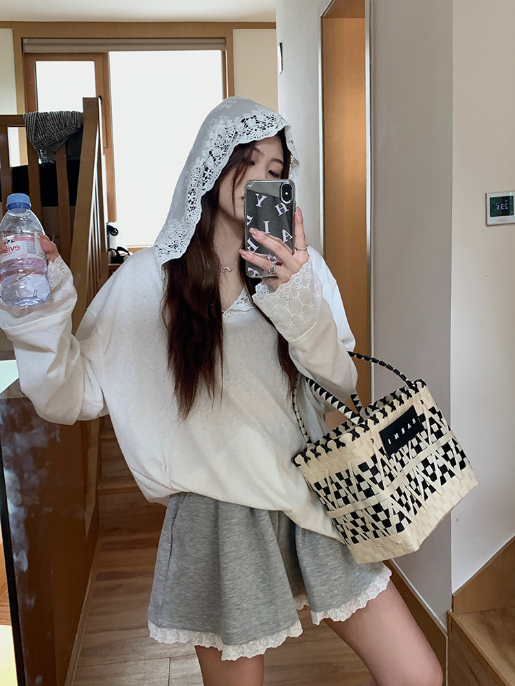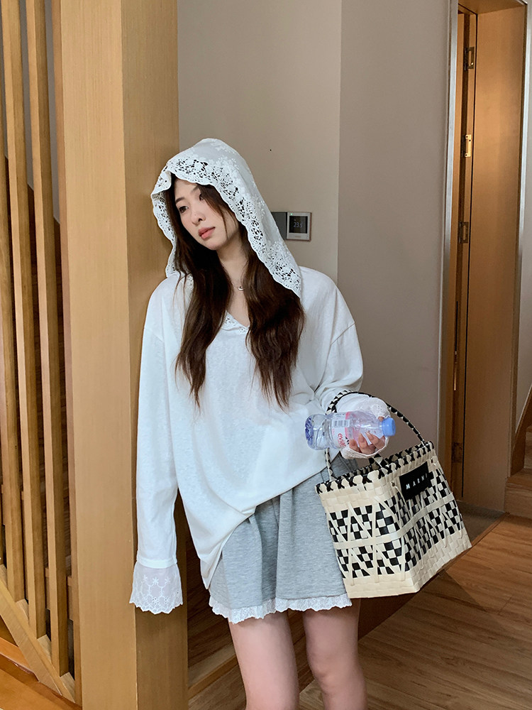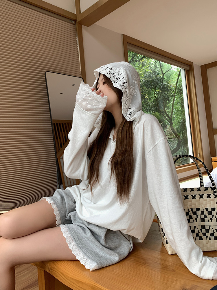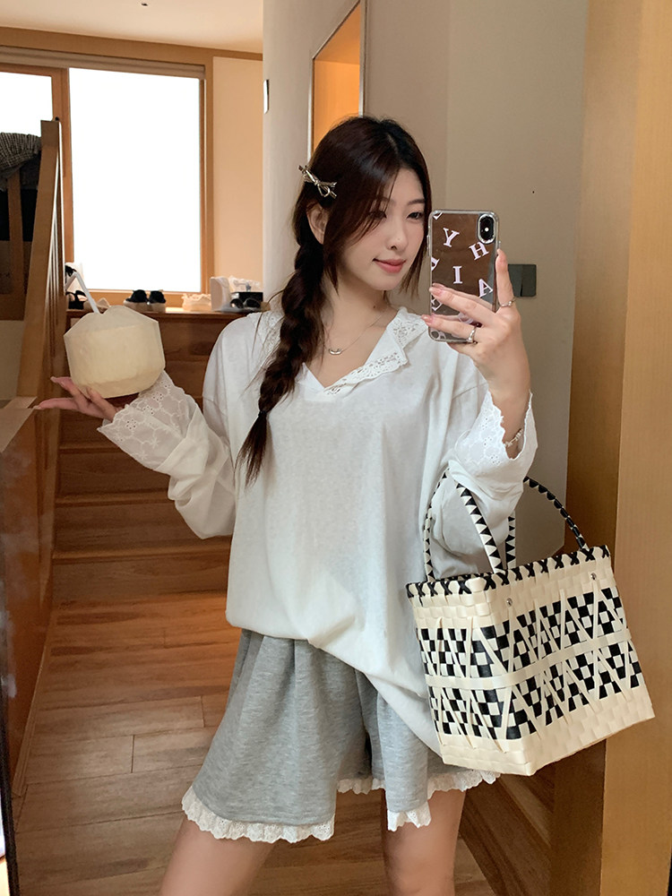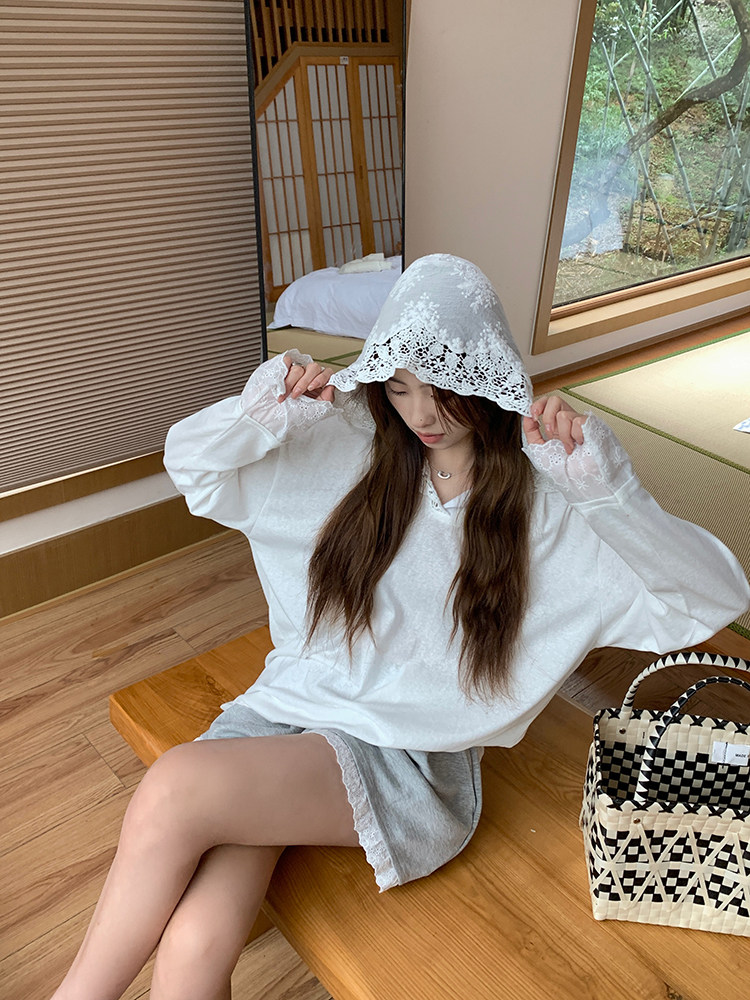 面料:雪花棉拼蕾絲 厚度:薄款 版型:寬松 內襯:無 拉鏈:無 彈力:無彈 肩帶:無