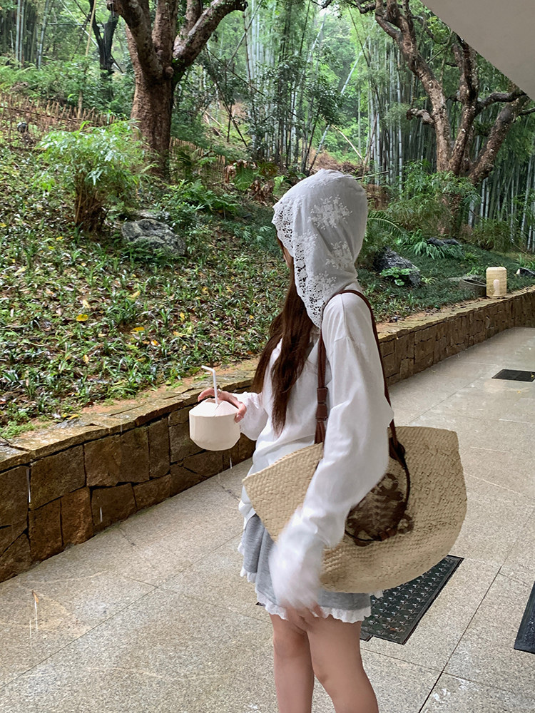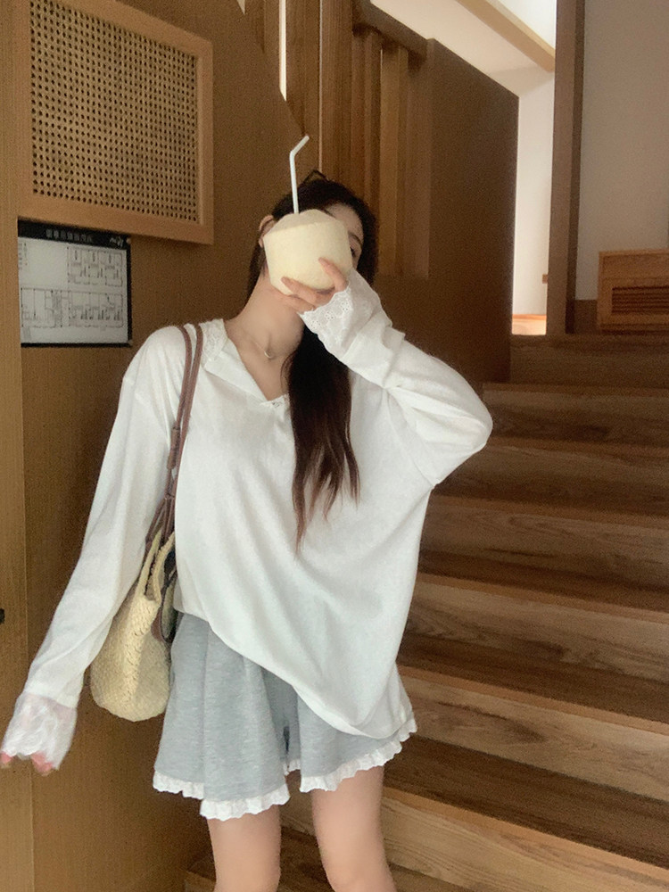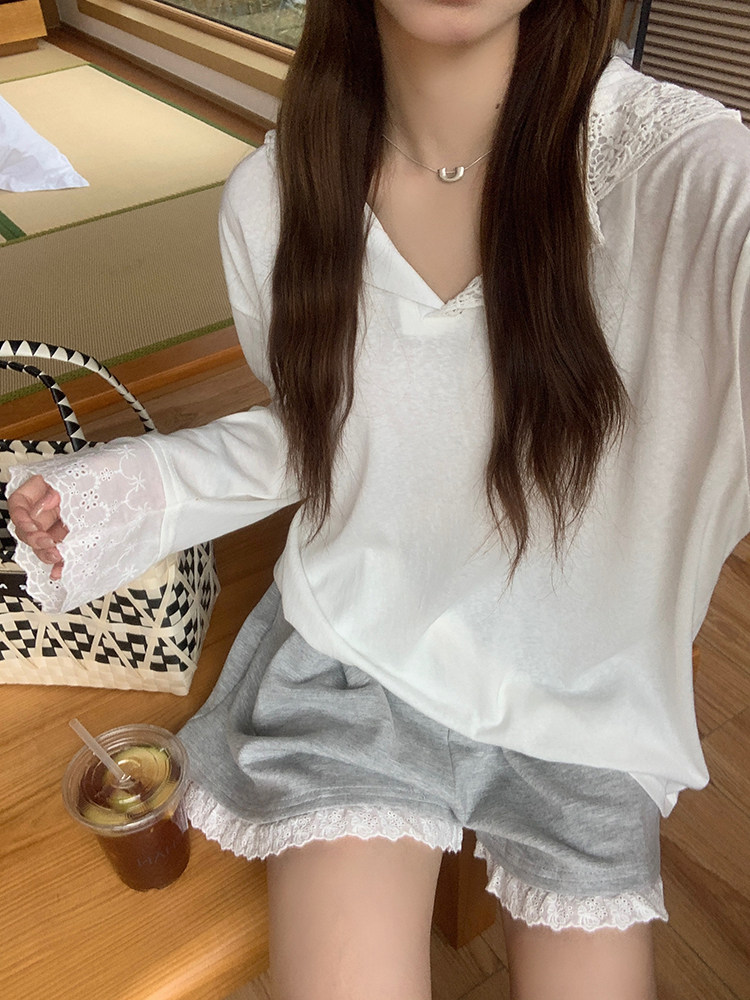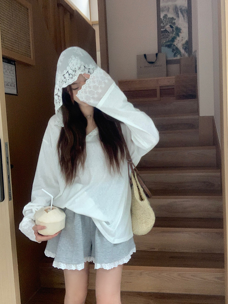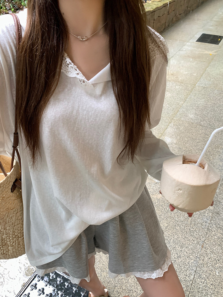 面料:雪花棉拼蕾絲 厚度:薄款 版型:寬松 內襯:無 拉鏈:無 彈力:無彈 肩帶:無