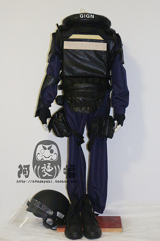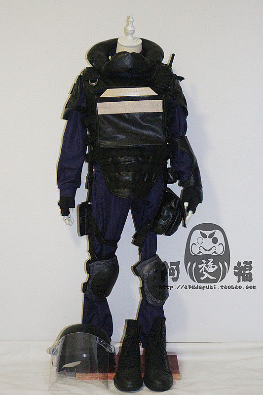 ,防彈衣和護肩是PU皮或加厚麻布(內襯薄海綿或棉花)。靴子是普通黑色軍靴(或客戶指定,價格可能會有差價)