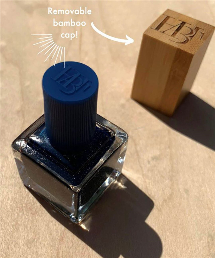 這個品牌的非常重視環保,甲油無毒且含沒藥成分,高效能,速干。10 free安全標準,高品質原料及配方,竹子外蓋可完全回收再利用,內蓋亦由80%可回收再利用的塑料制成,全方位環保品質!下面是蓋子的結構圖,