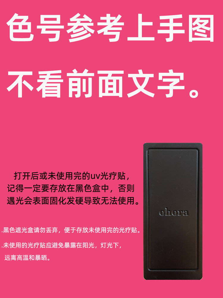 上手圖都是韓國官網照片,光線不同 偶有顏色可能會略有色差,請理性對待,謝謝,包裝中的黑色遮光盒請勿丟棄,未使用或者未用完的甲貼需要放里面以防硬化