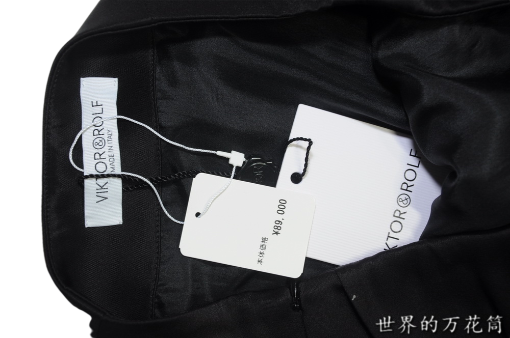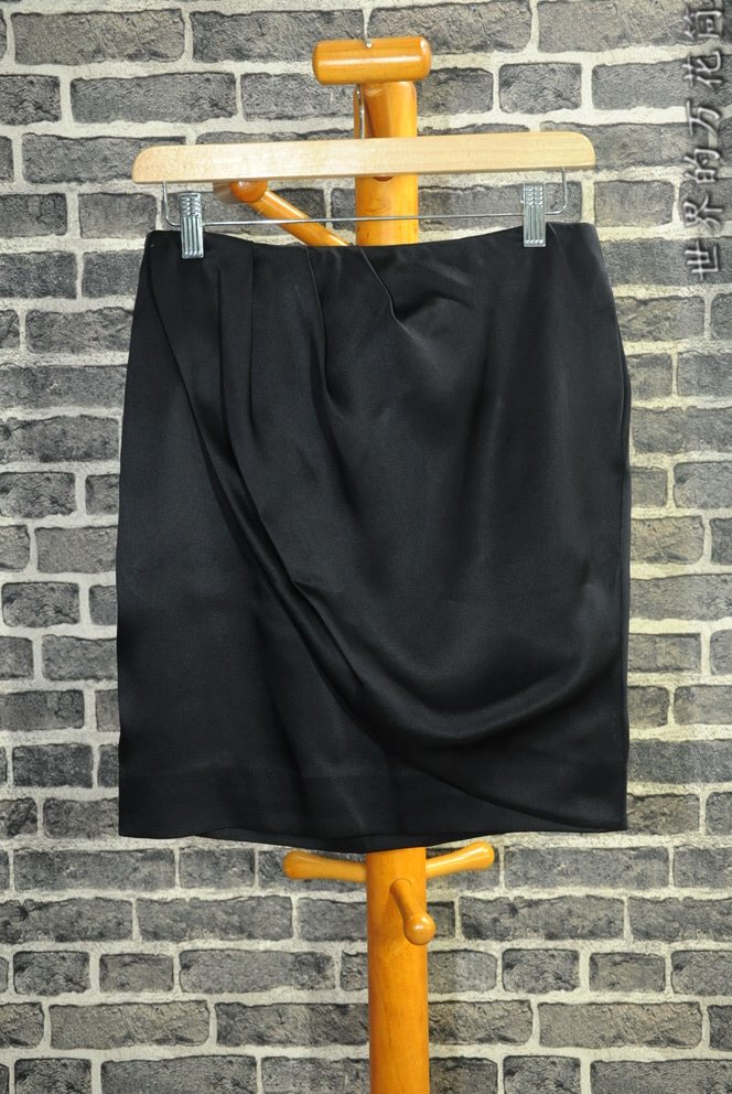 >Viktor&Rolf:女士黑色絲綢褶皺設計中裙