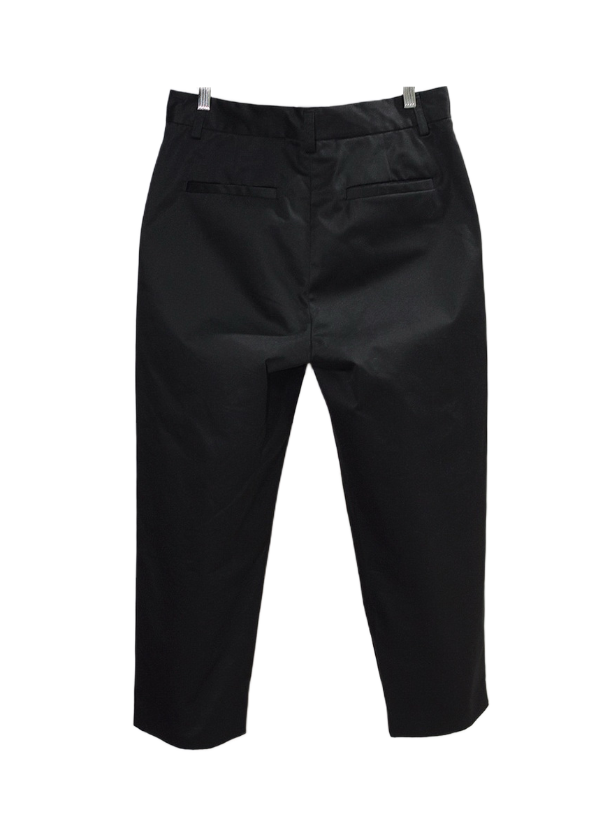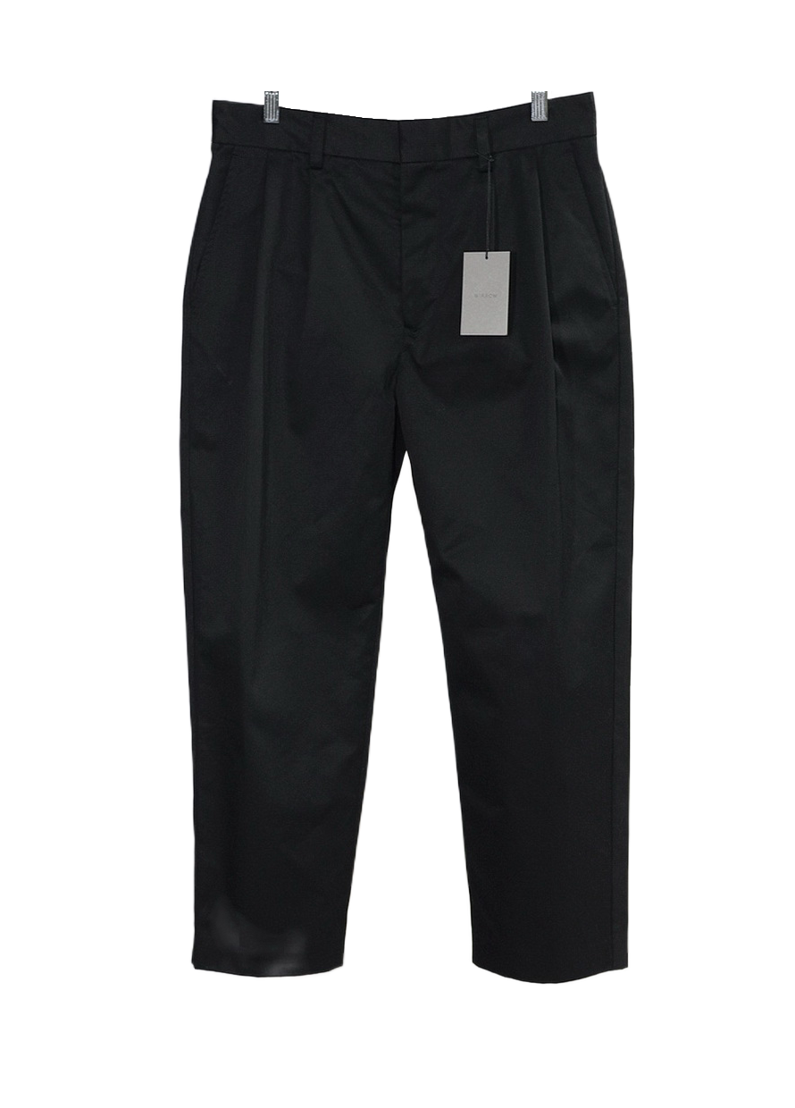 >Wirrow:經典高腰緞紋棉 黑色廓形休閑褲