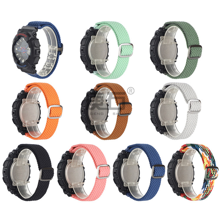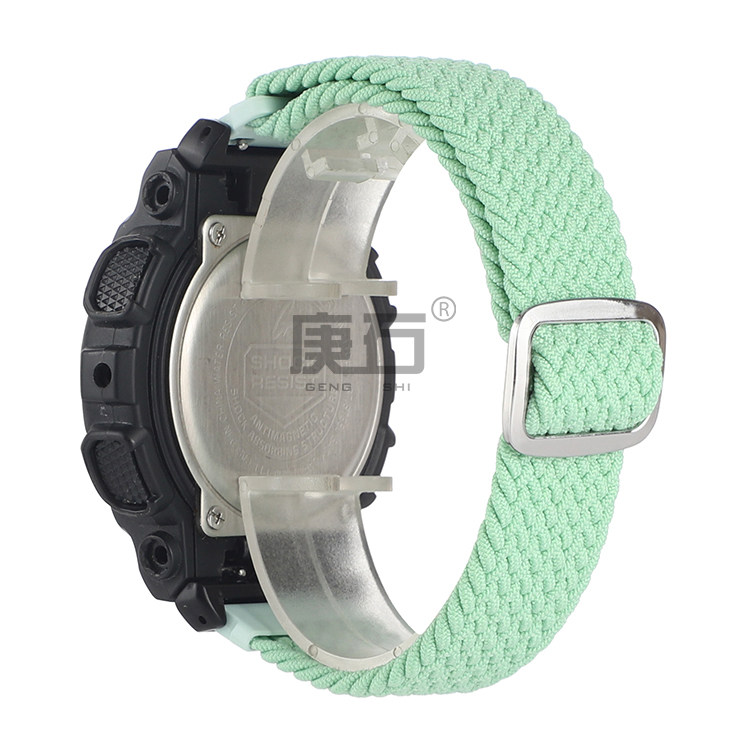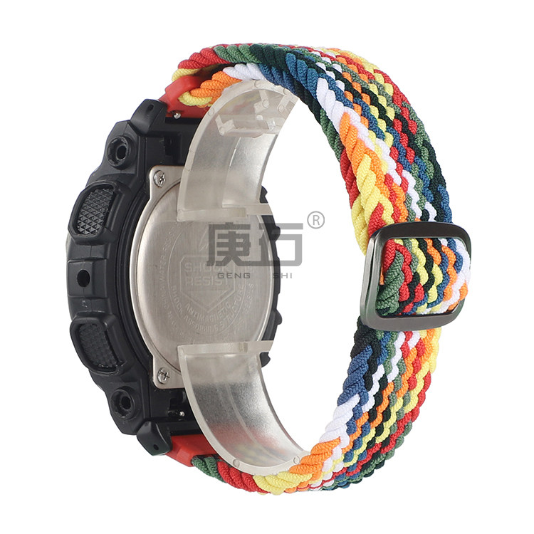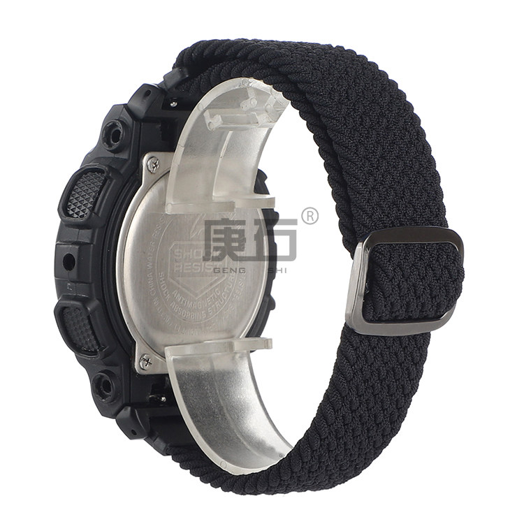 配拆表工具,接頭有銀色和黑色,隨機發黑色。尼龍彈力編織表帶可調節16-23CM手腕使用。