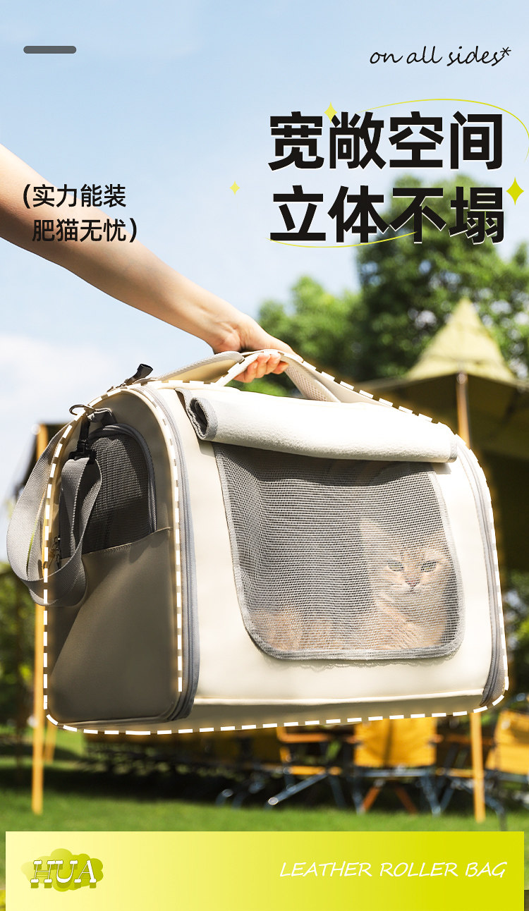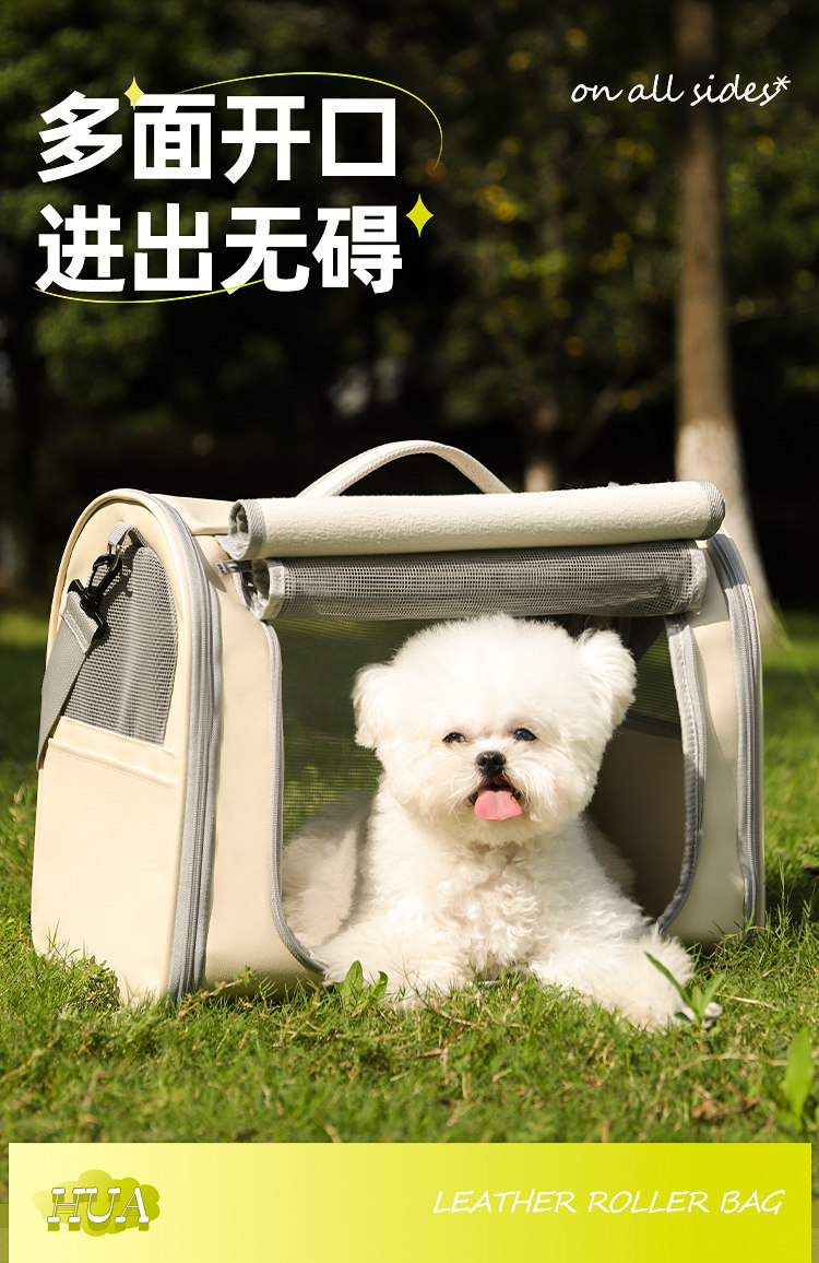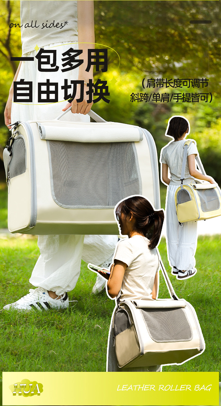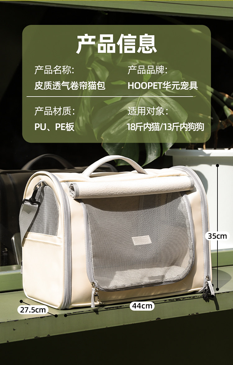 | 品名/Trade name | HOOPET寵物透氣卷簾單肩包(米白/黃色) |