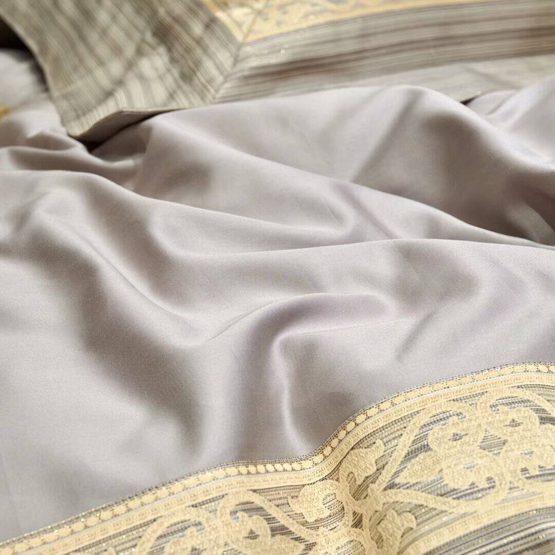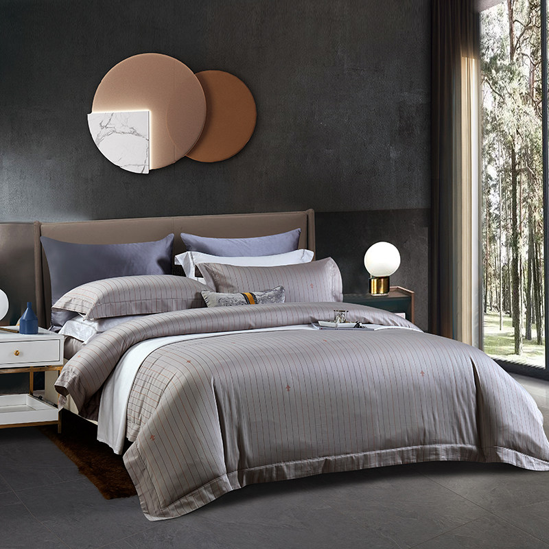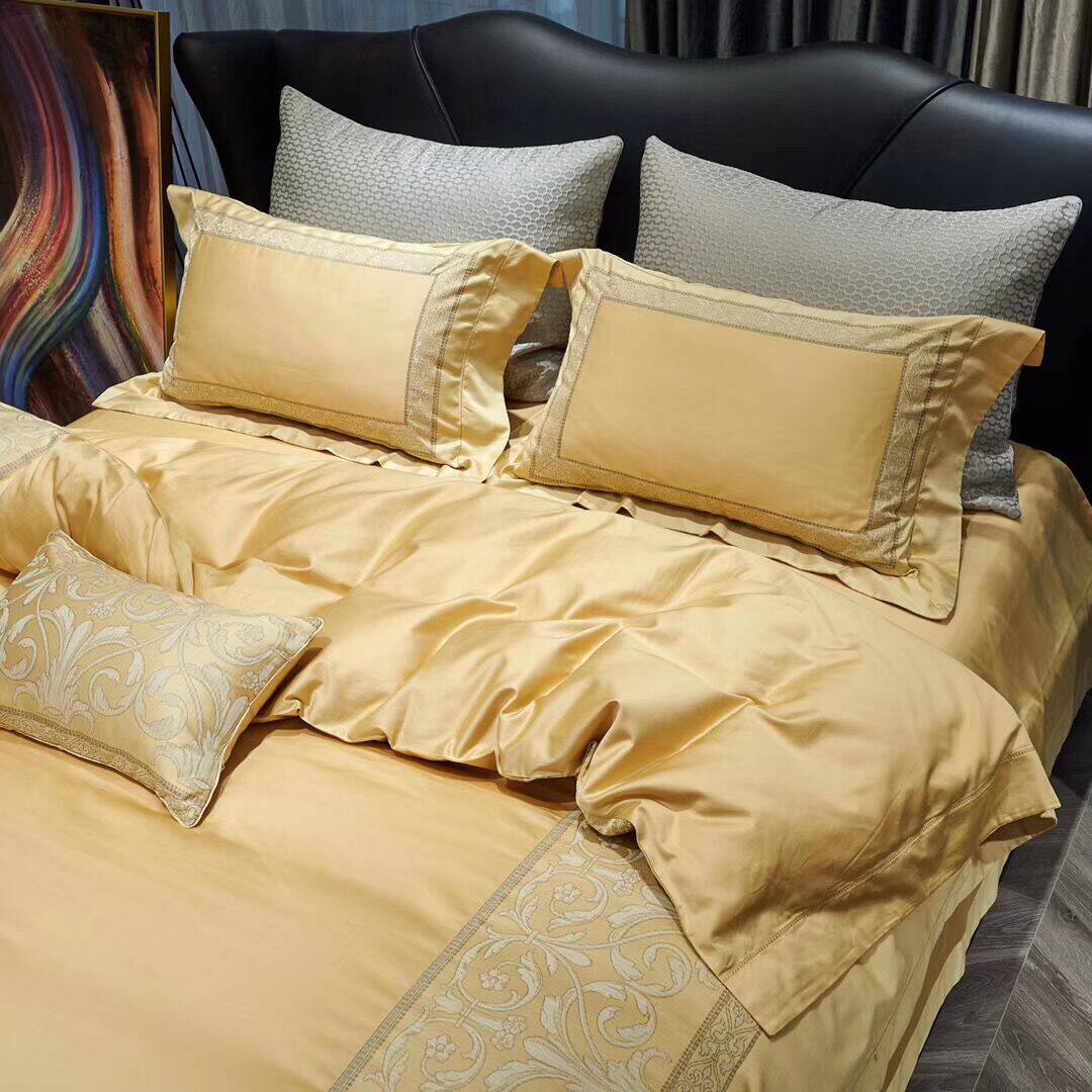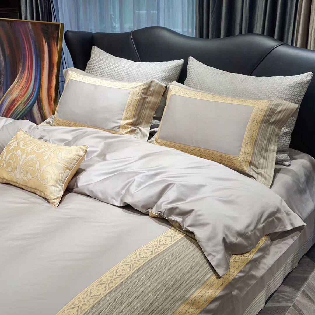 色調舒適的高端全棉搭配著立體突出的金絲提花,