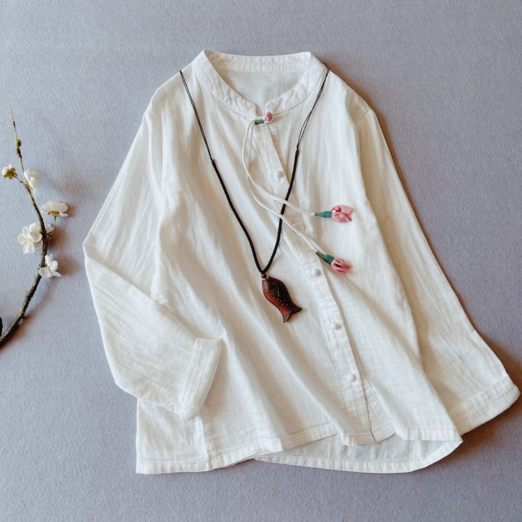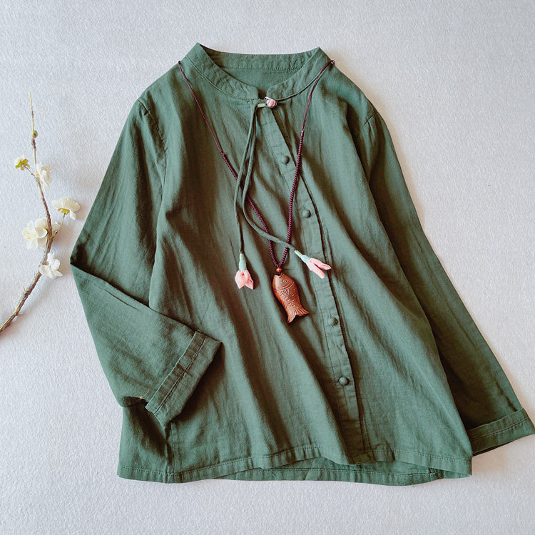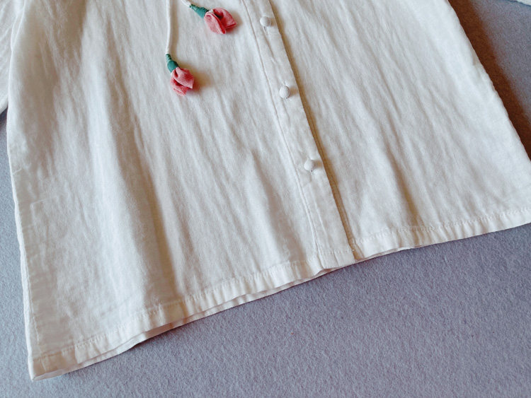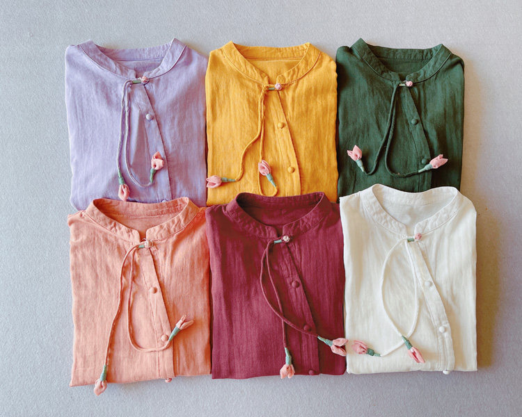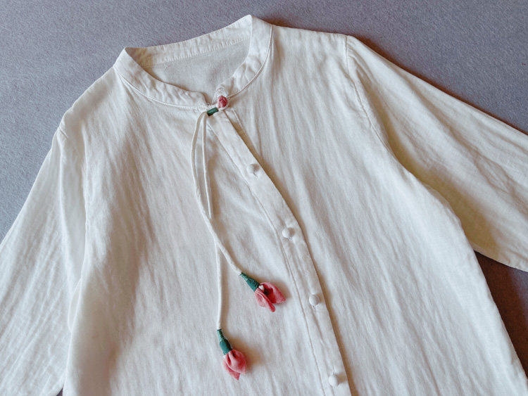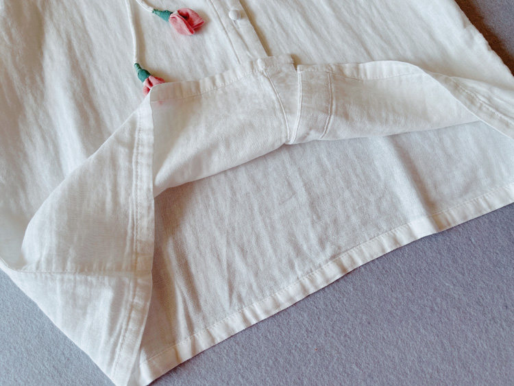 [ 尺寸](自然平鋪,單位cm)材質 棉麻均碼 肩寬40 袖長56 胸圍106 下擺圍104 衣長63*注:測量尺寸下手不一,或有2-4cm 誤差,屬合理范圍不包含內搭,團扇,項鏈和其他配飾