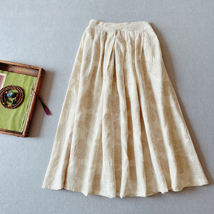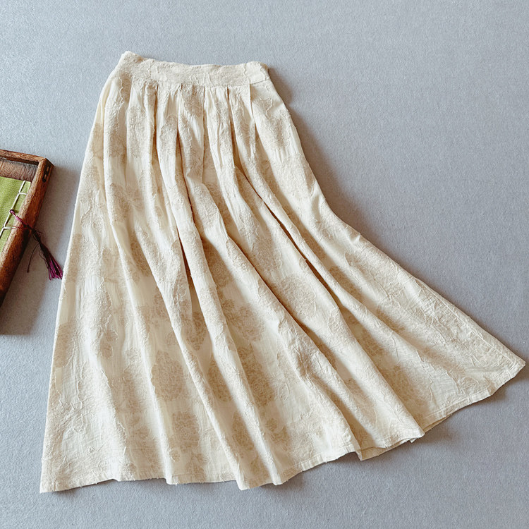 [ 尺寸](自然平鋪,單位cm)材質 棉麻均碼 襯衫 肩寬40 胸圍108 下擺圍120 袖長36 衣長60半身裙 腰圍60-90 臀圍不限 下擺圍250 裙長77*注:測量尺寸下手不一,或有2-4cm 誤差,屬合理范圍不包含項鏈,團扇和其他配飾