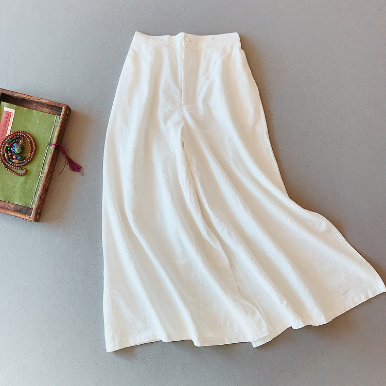 [ 尺寸](自然平鋪,單位cm)材質 棉麻均碼 腰圍64-92 臀圍116 前襠30 大腿圍76 褲腳口105 褲長85*注:測量尺寸下手不一,或有2-4cm 誤差,屬合理范圍不包含內搭,項鏈和其他配飾