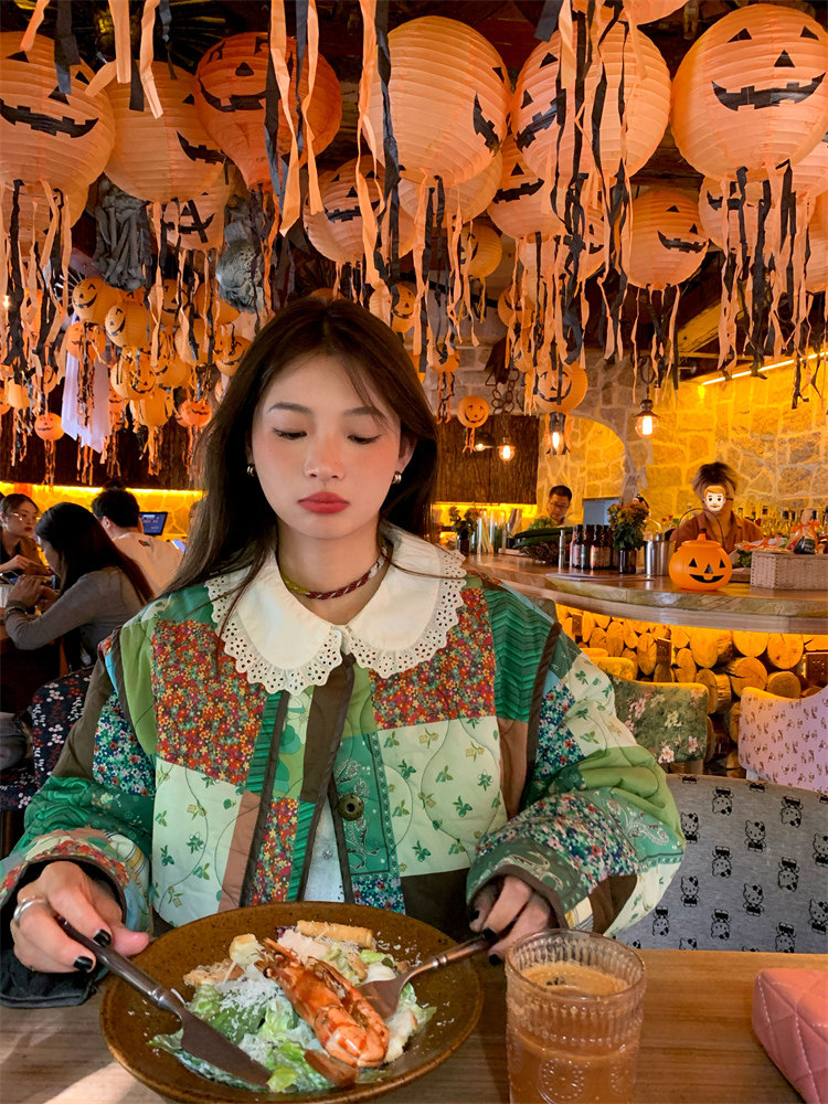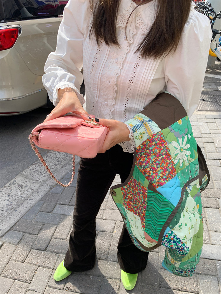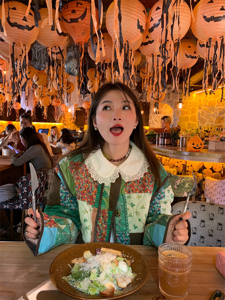 前面門襟蕾絲花邊造型重工buff加持,搭配jing美小扣子減齡甜美!