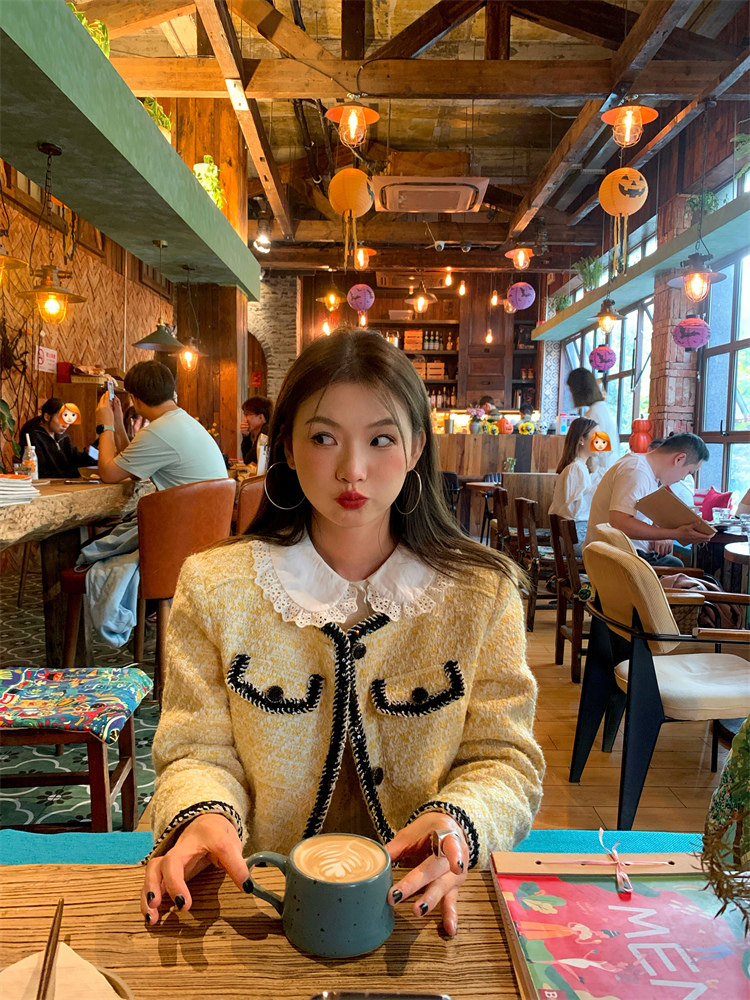 蕾絲花邊翻領巧妙的修飾頭肩比,顯臉小,簡直就是我心頭的白月光!