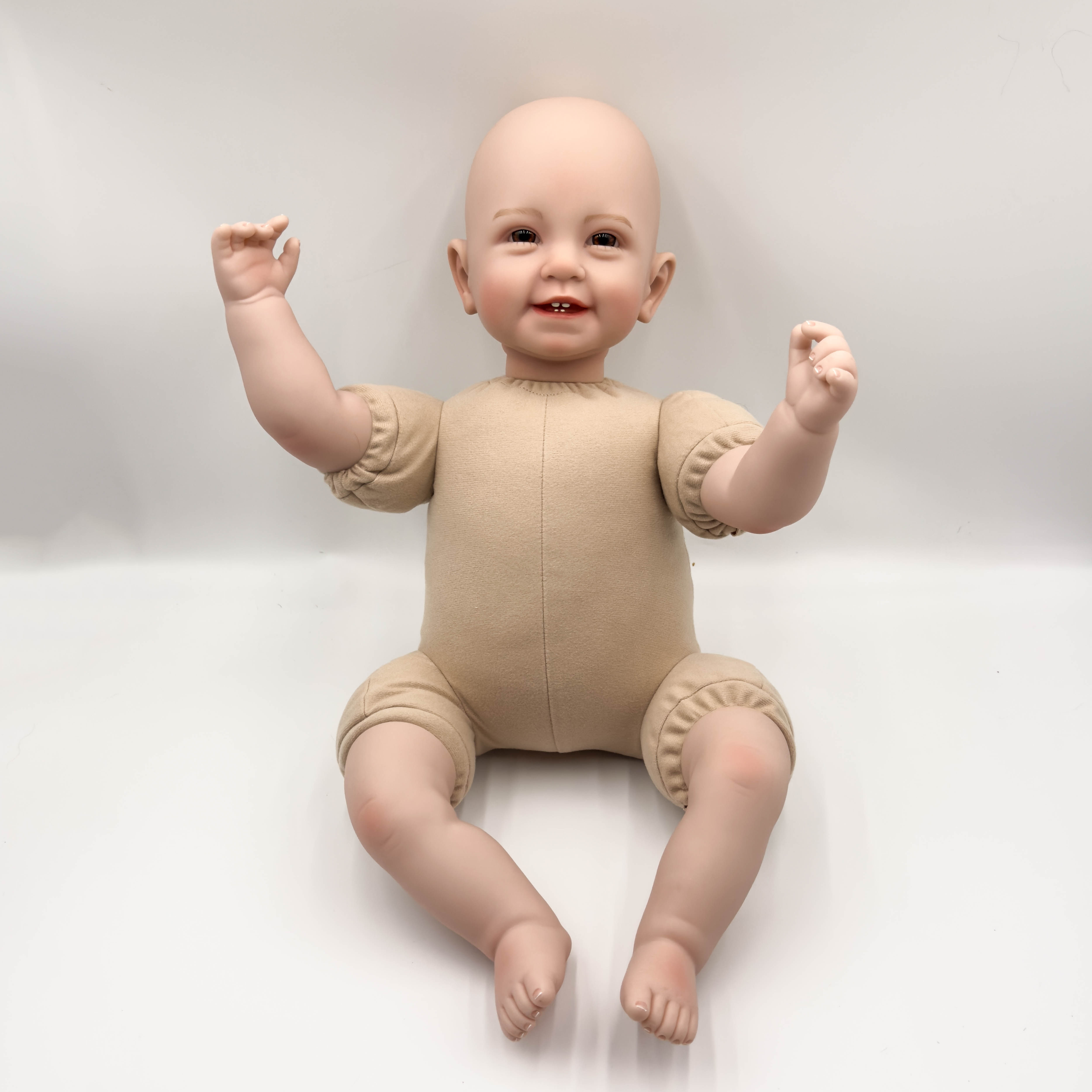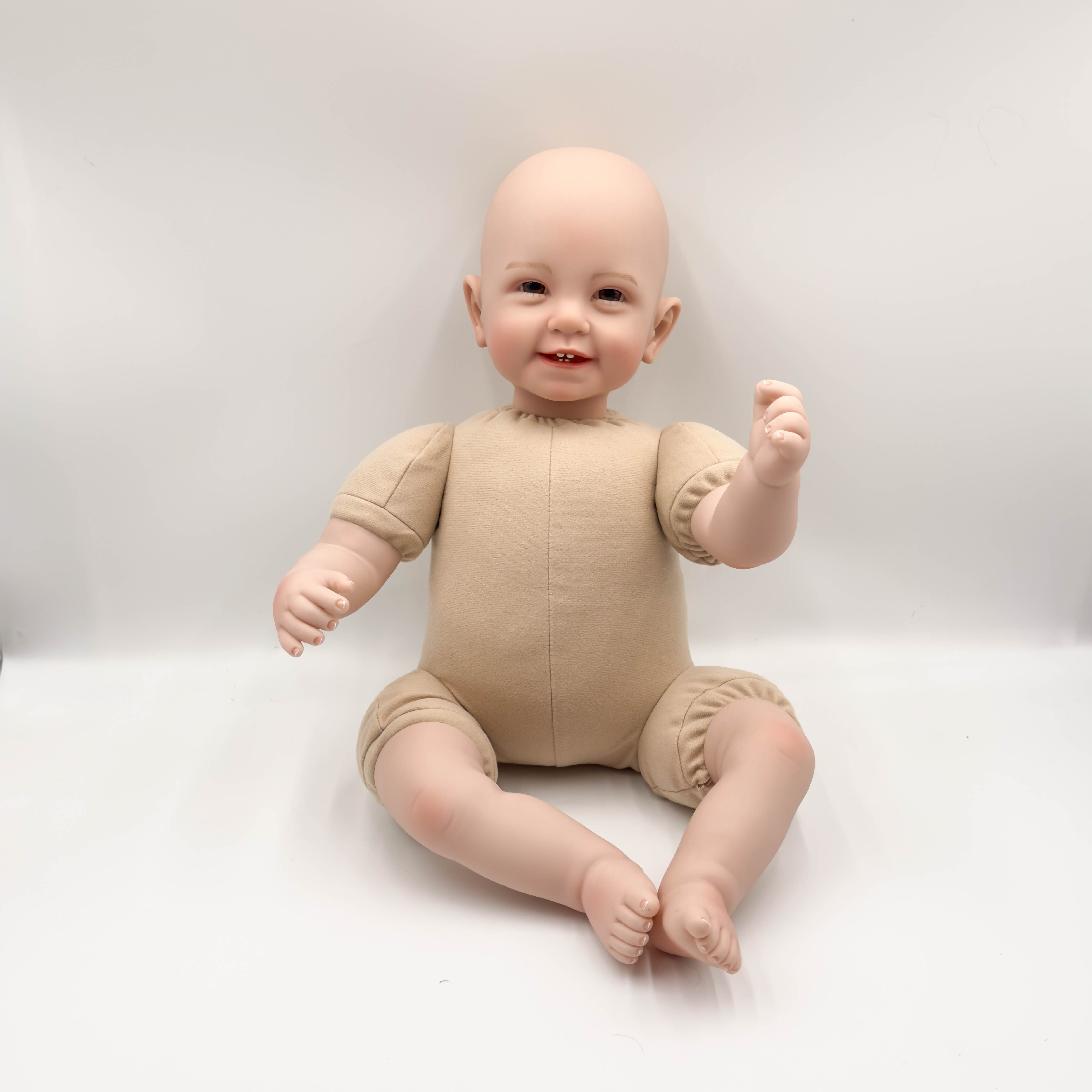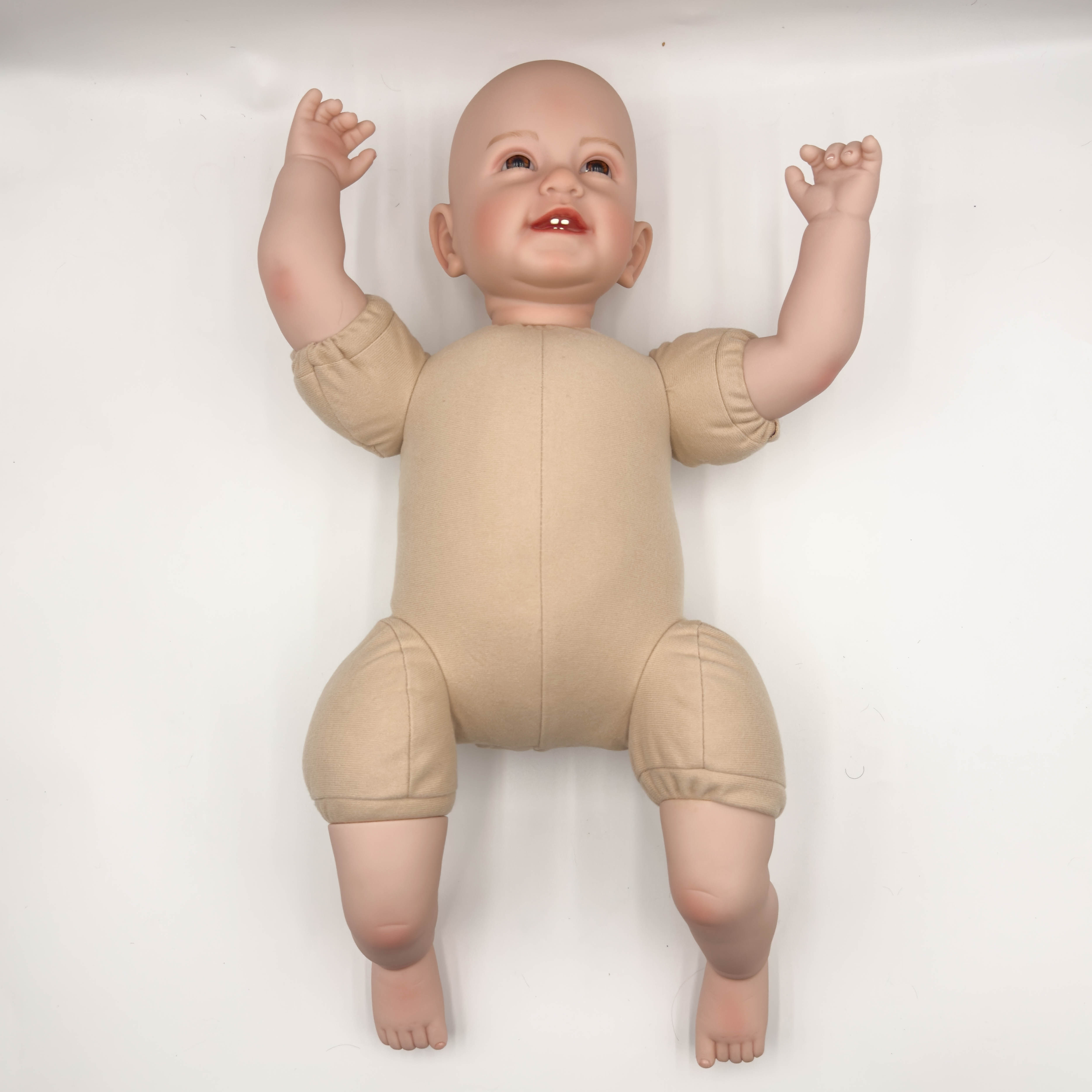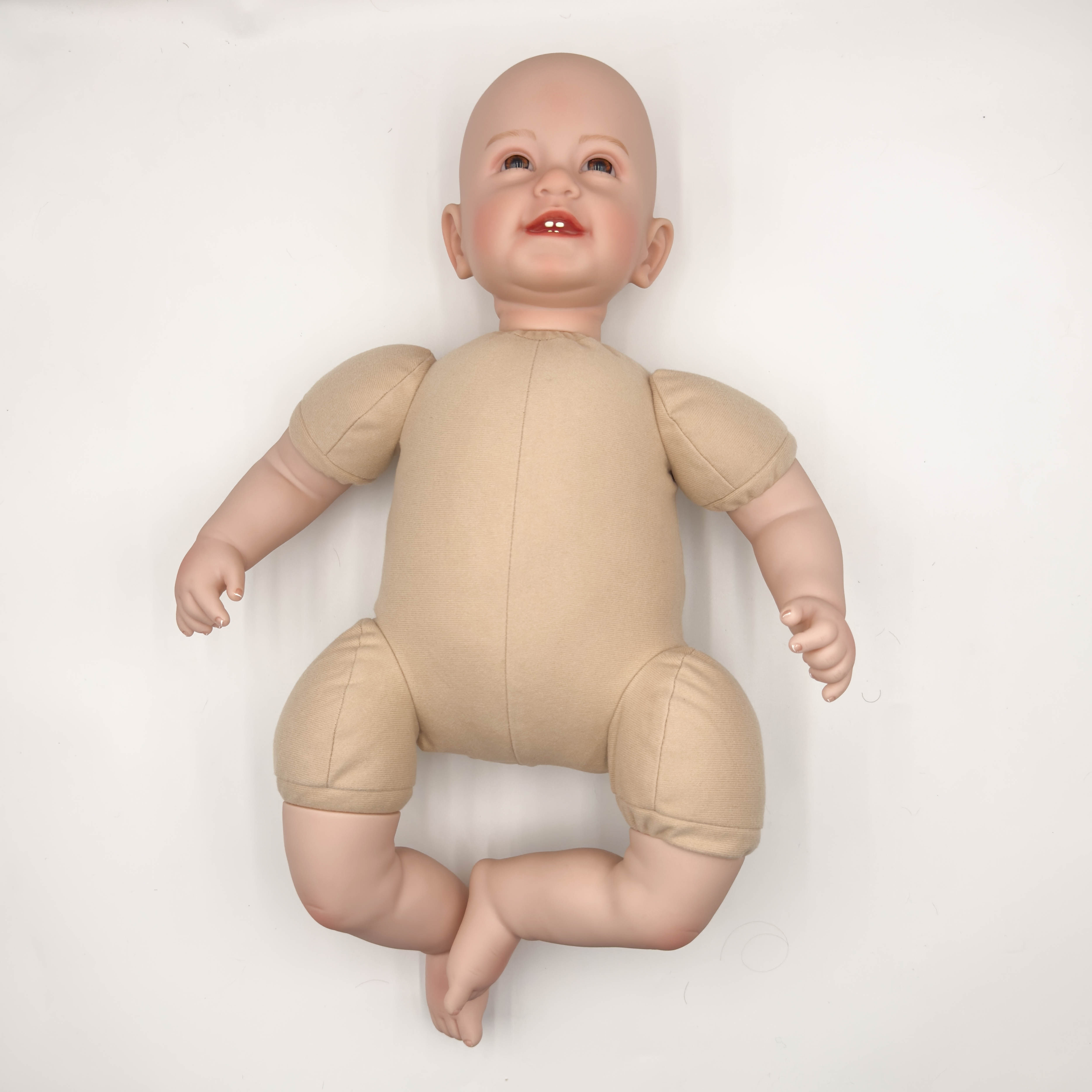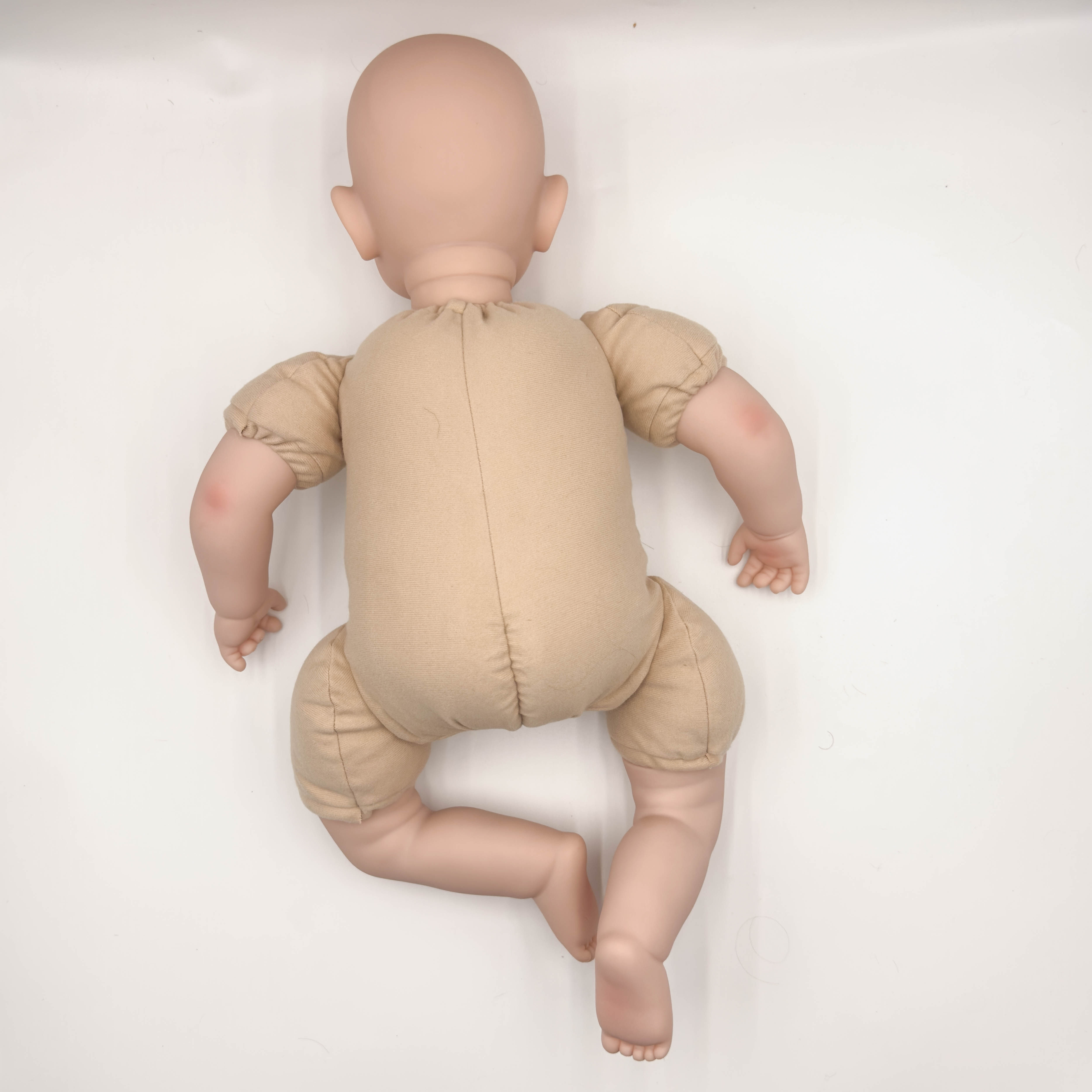 結構:頭和四肢為進口硅膠制作,不是特別軟,空心娃娃,軟硬適中,身體是棉身,很柔軟;不會站立,不會說話;布身娃娃不可入水的哦