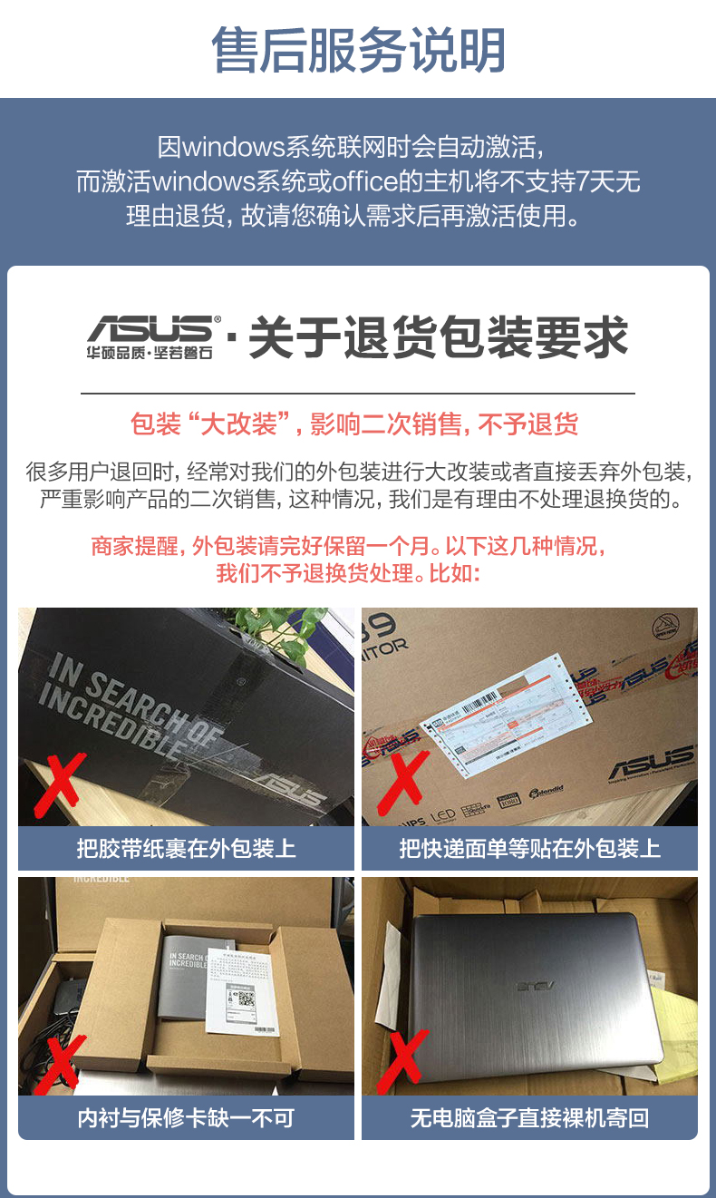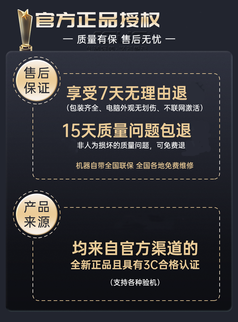 請務必全程錄影商品的拆封過程,這將作為您申訴新品瑕疵的重要依據。如無法提供錄影證據,申訴將不予受理。在申訴過程中,請保留商品外箱並妥善保存商品。如商品收回時未能維持原包裝,可能需向您收取10~30%的整新費。