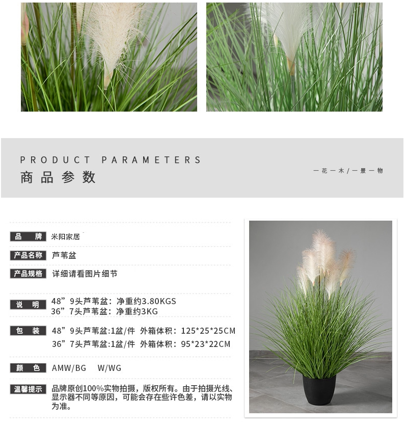 現倉庫備有大量75厘米綠葉5頭蘆葦盆栽,上圖為手機實拍,質量非常好!除西北偏遠6省和港澳臺之外全國包郵,這個價格親們可以全網對比,東莞原產地發貨!(僅限75厘米5頭蘆葦盆栽)