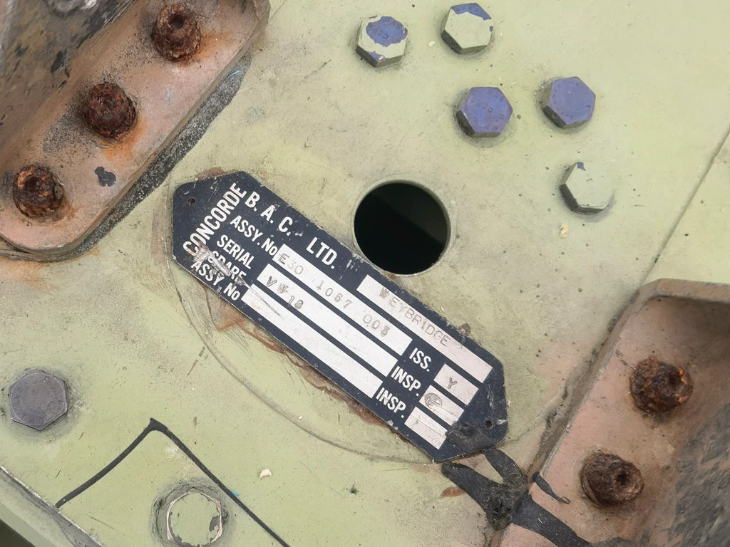 1979年7月21日,該機在27.000英尺的巡航高度發生輪胎爆裂,導致發動機壓氣機失速;同年9月23日,該機在達喀爾著陸時,輪胎胎面脫落導致3號輪胎/輪轂及3號發動機受損而不得不進行更換;更逆天的是,同年11月5日,該機在華盛頓著陸時,右側主起落架撞上了兩只鹿,導致4號發動機葉片受損。1980年6月1日,該機正式返回法航機隊,恢復原注冊號F-BVFD。1982年,法航因財務原因終止了巴黎-達喀爾-里約熱內盧以及巴黎-華盛頓的協和航班運營。因此,航司不再需要其機隊中的全部七架協和飛機,而是僅需要六架。由于F-BVFD有著潛在的結構損傷,并且額外加裝了更重的修補材料,因此該機被選中而不得不退役。這架命運多舛的客機于1982年5月27日正式退役,并自此停放在巴黎,成為法國航空和英國航空其它協和飛機的零部件供應機。在F-BVFD短暫的服役生涯中,該機累計飛行1,929次5,814小時,其中1,807次為超音速飛行。1994年,這架已經嚴重腐蝕且缺失發動機的機體最終被拆解,僅留下少量殘片存世。最近,我們在法國購得了一臺帶有補丁的量產型協和飛機的反推裝置該反推由一名前斯奈克瑪工程師收藏。進一步拆解后,我們發現反推上有-處標記,顯示某組件制造于1976年3月。這排除了七架生產型法航協和飛機中的三架(F-BTSC、F-BVFA和F-BVFB)。由于協和飛機的部件生產與首飛之間通常間隔6個月至1年,因此1978年制造的F-BTSD和F-BVFF也可以基本排除。這樣一來,該反推只可能來自于F-BVFC和F-BVFD了。此外,這個反推的補丁位于前緣則意味著其損傷發生在著陸過程中而非起飛時。同時與博物館中展出的反推相比,該反推表面有著極其有限的高速高溫氣流侵蝕,這表明其服役時間較短,而不是接連服役了數十年。綜上所述,雖然無法100%確定,但我們判斷該噴嘴極有可能拆卸于F-BVFD。