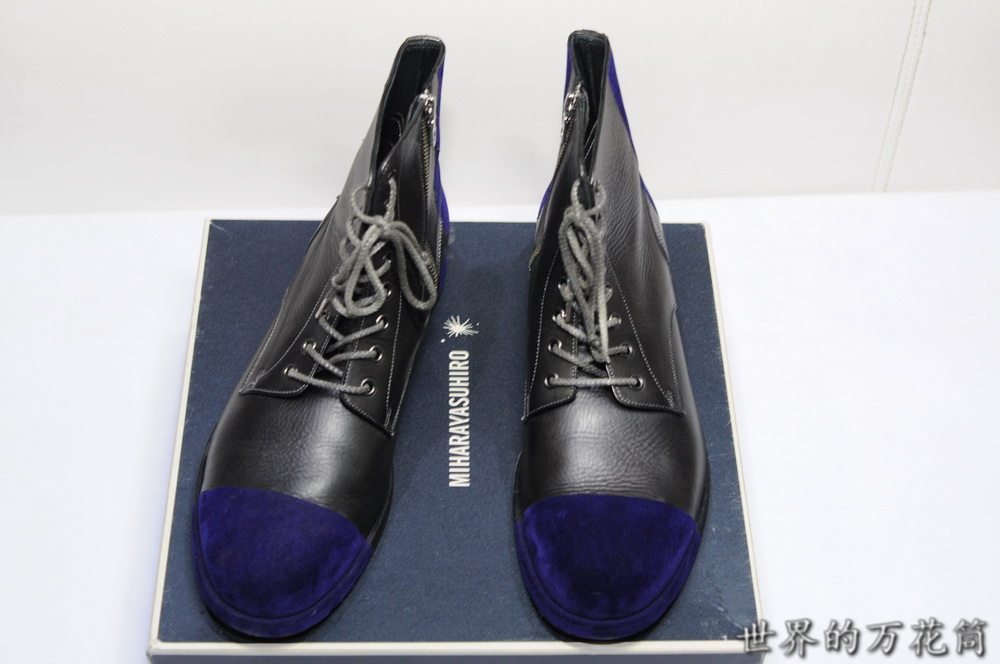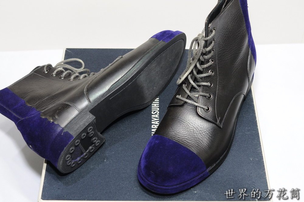>Mihara Yasuhiro :黑色絲絨拼接 設計款高幫德比鞋 騎士靴
