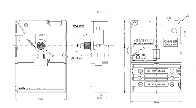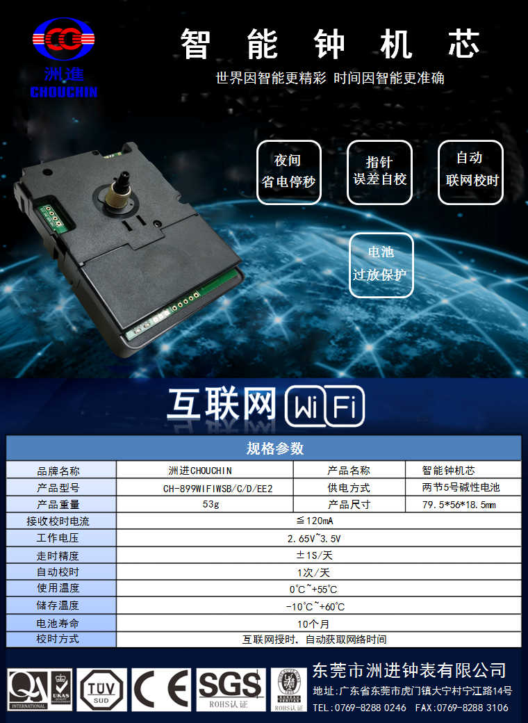 名稱:洲進掃秒WIFI電波機芯 型號:CH-899WIFIWS ,固定螺絲軸長7毫米