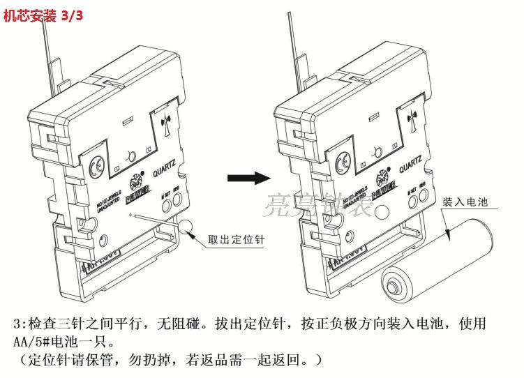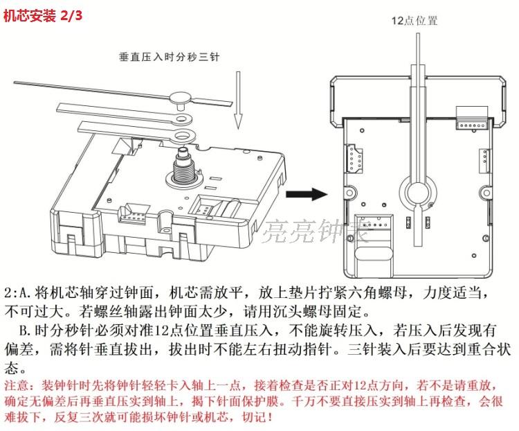 替換舊機芯時注意:此機芯鐘針軸直徑特殊,與其它品牌機芯鐘針不通用,只能用自己帶的鐘針,暫時只有八款鐘針可選。