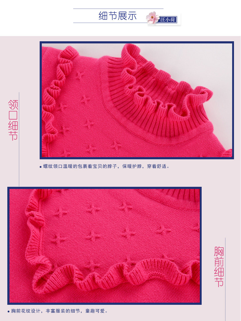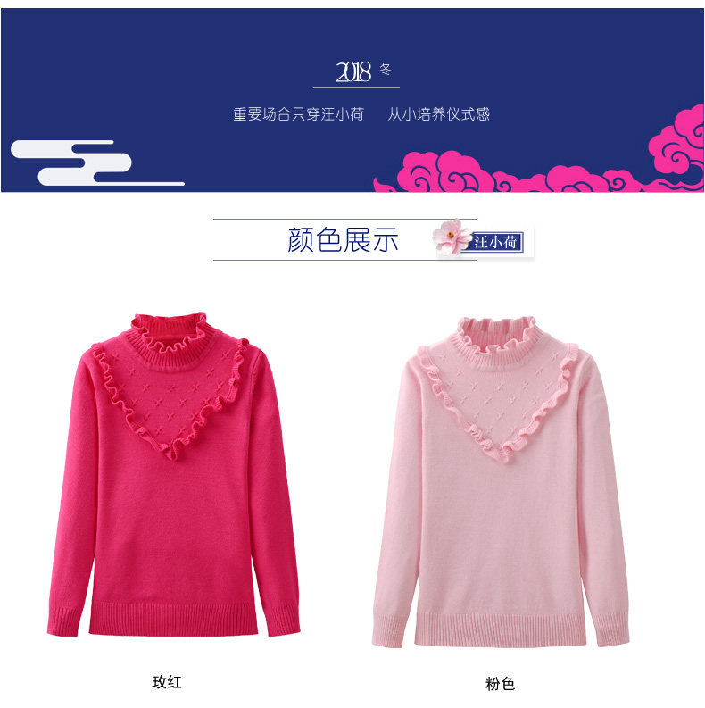 汪小荷女童裝打底衫春秋兒童打底毛衣冬季中大童套頭針織衫X5313B專柜價RMB299