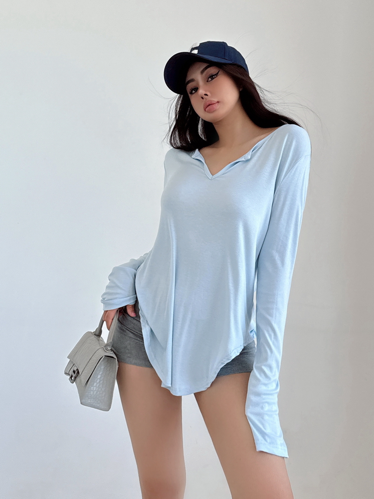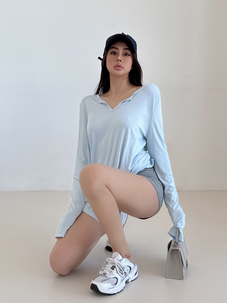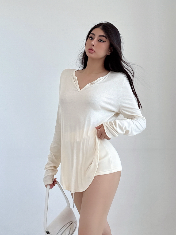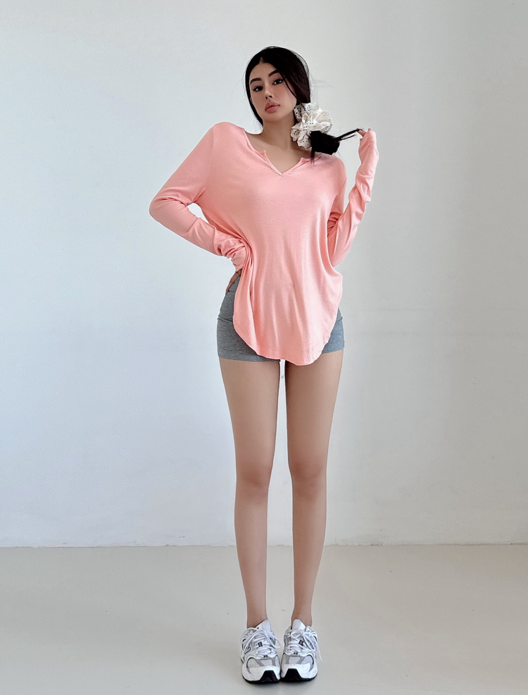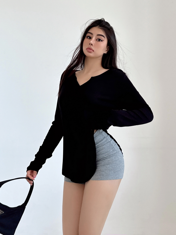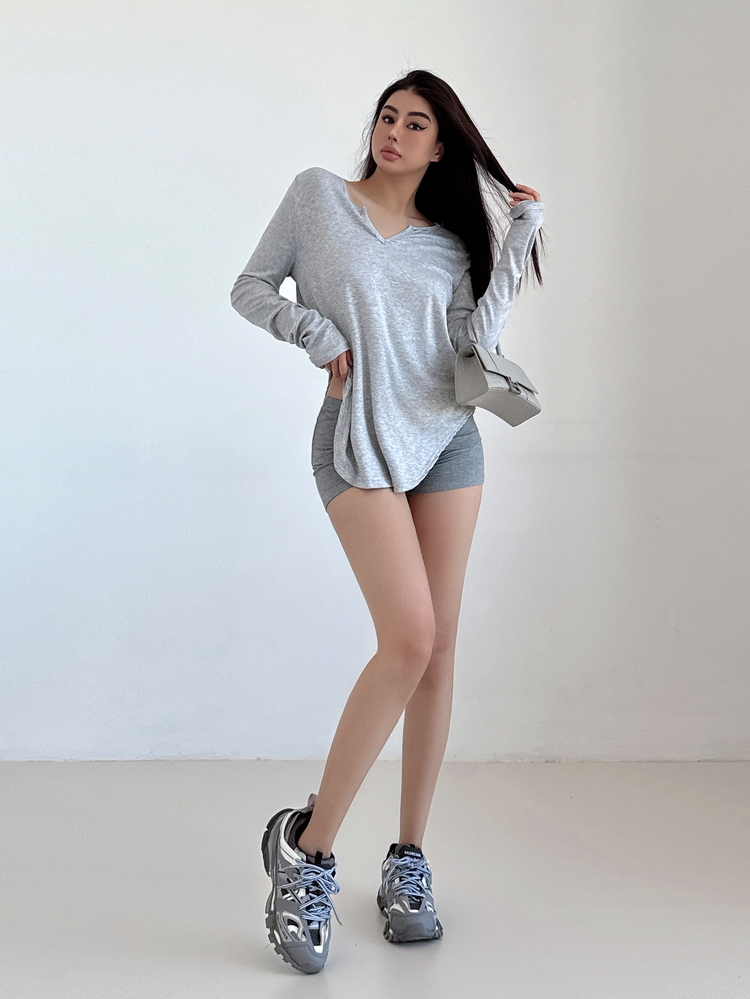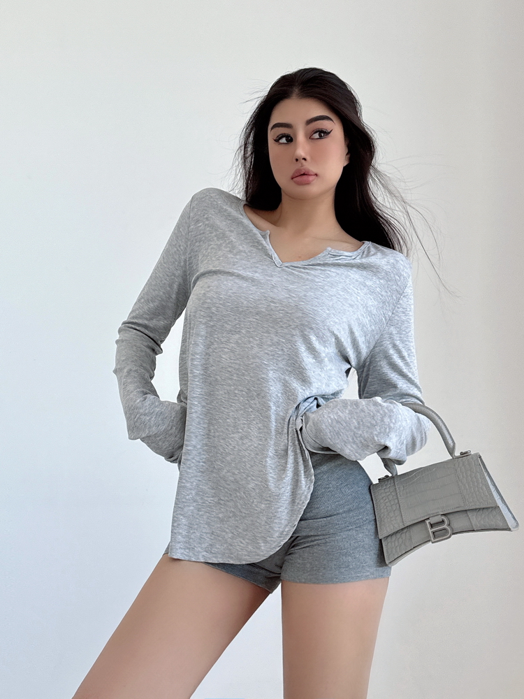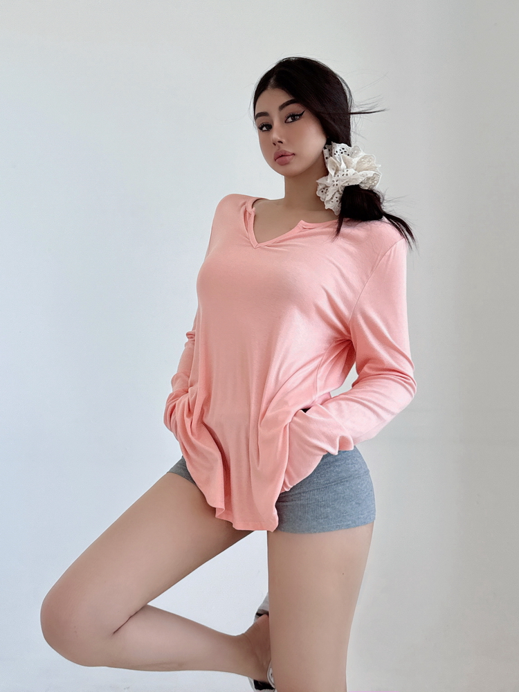 松弛感三個字我說累了 誰說辣妹不能有松弛感 這不就來了 寬松的版型舒服自在 單穿或者作為罩衫穿都OK 小V領更顯臉小 且修飾脖頸線條 ss面膜感真的炒適合日常OOTD