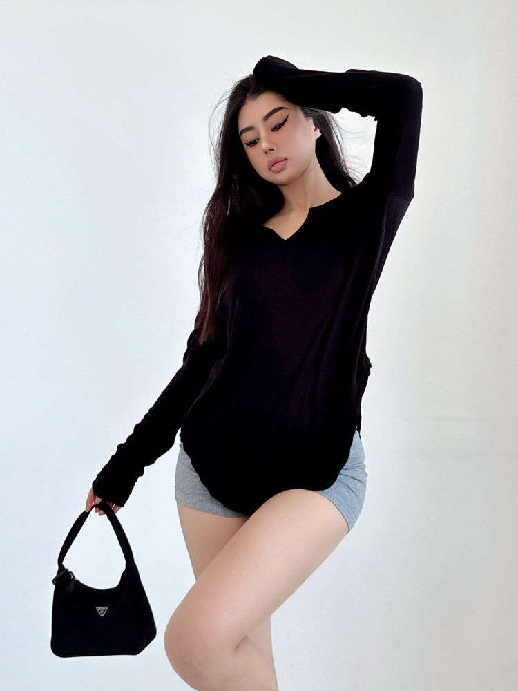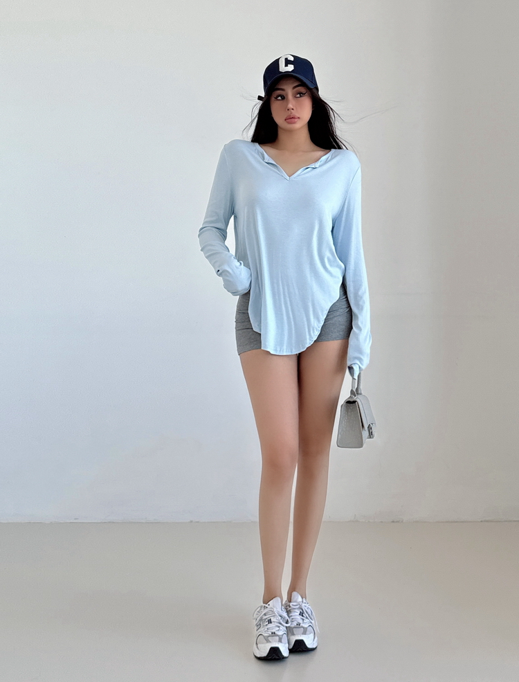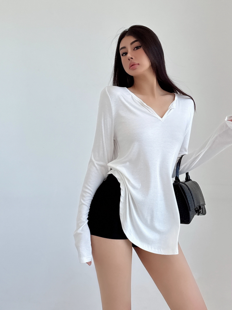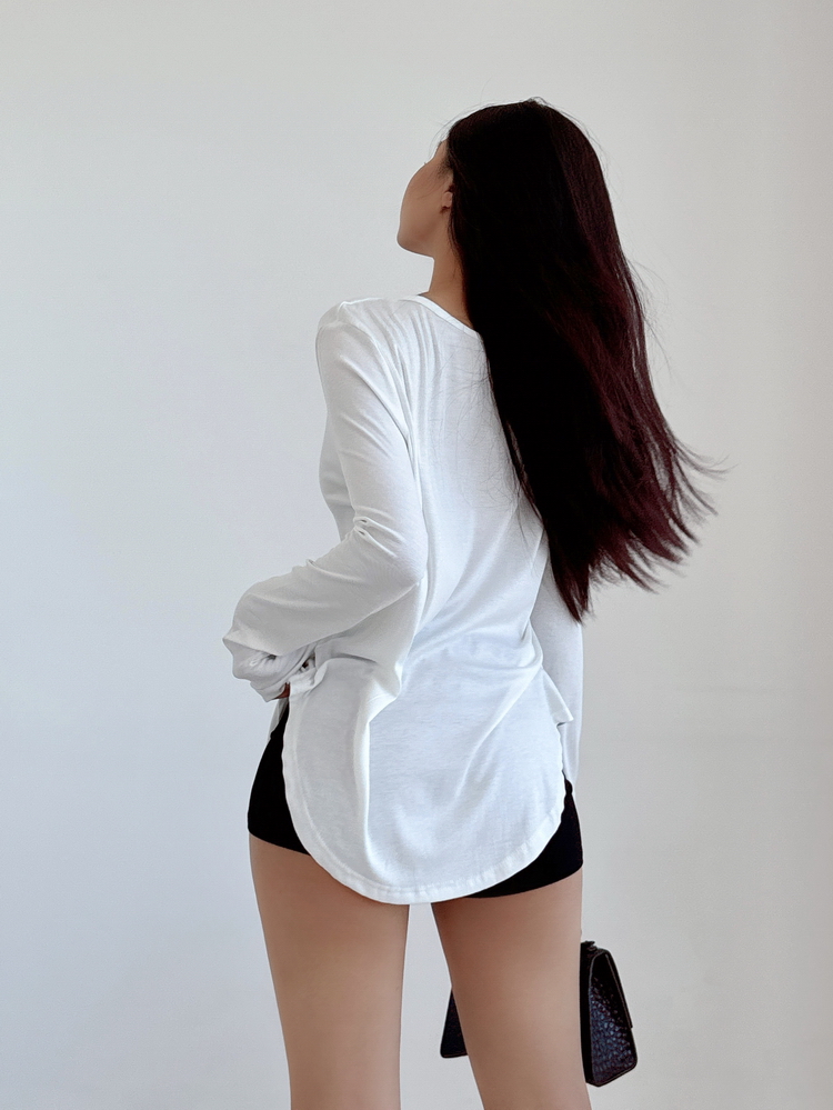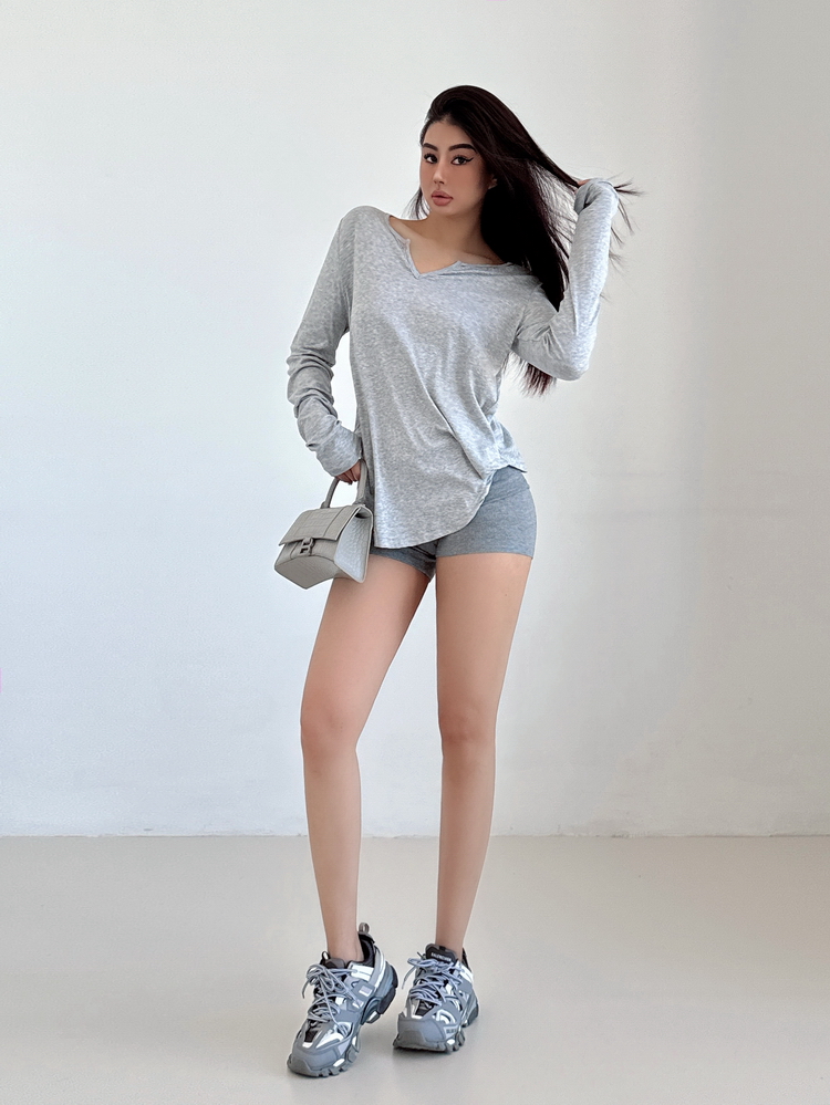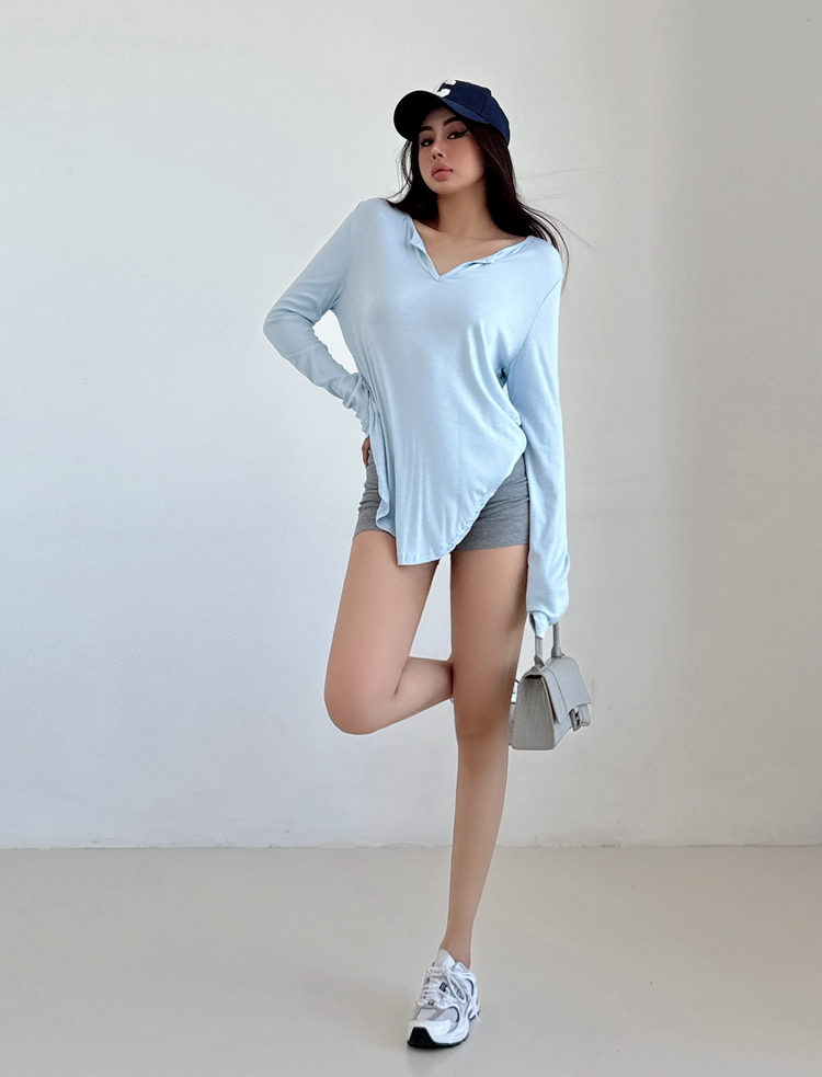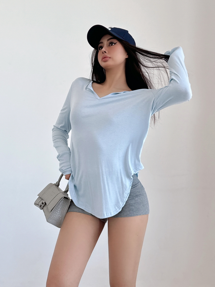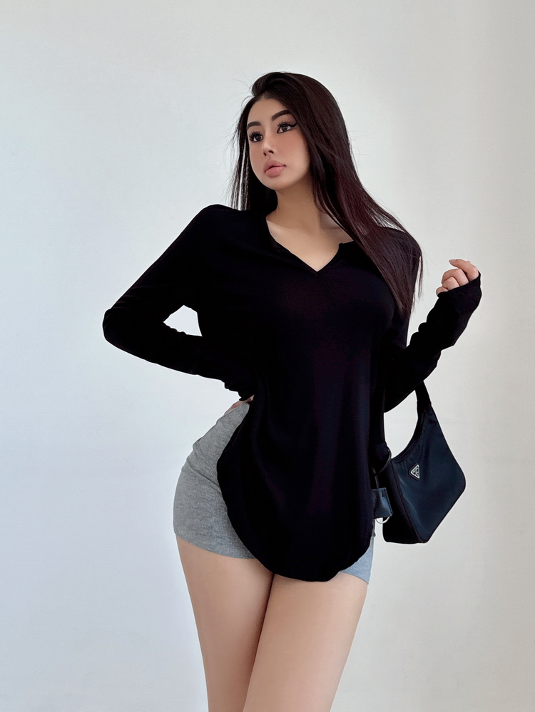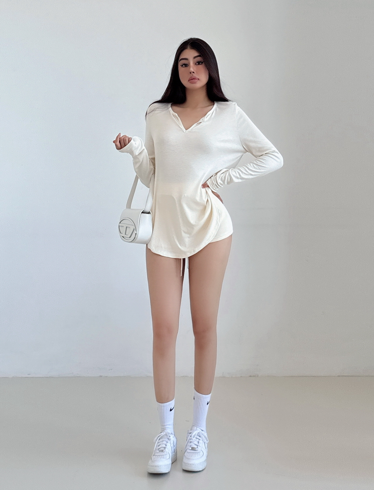 松弛感三個字我說累了 誰說辣妹不能有松弛感 這不就來了 寬松的版型舒服自在 單穿或者作為罩衫穿都OK 小V領更顯臉小 且修飾脖頸線條 ss面膜感真的炒適合日常OOTD
