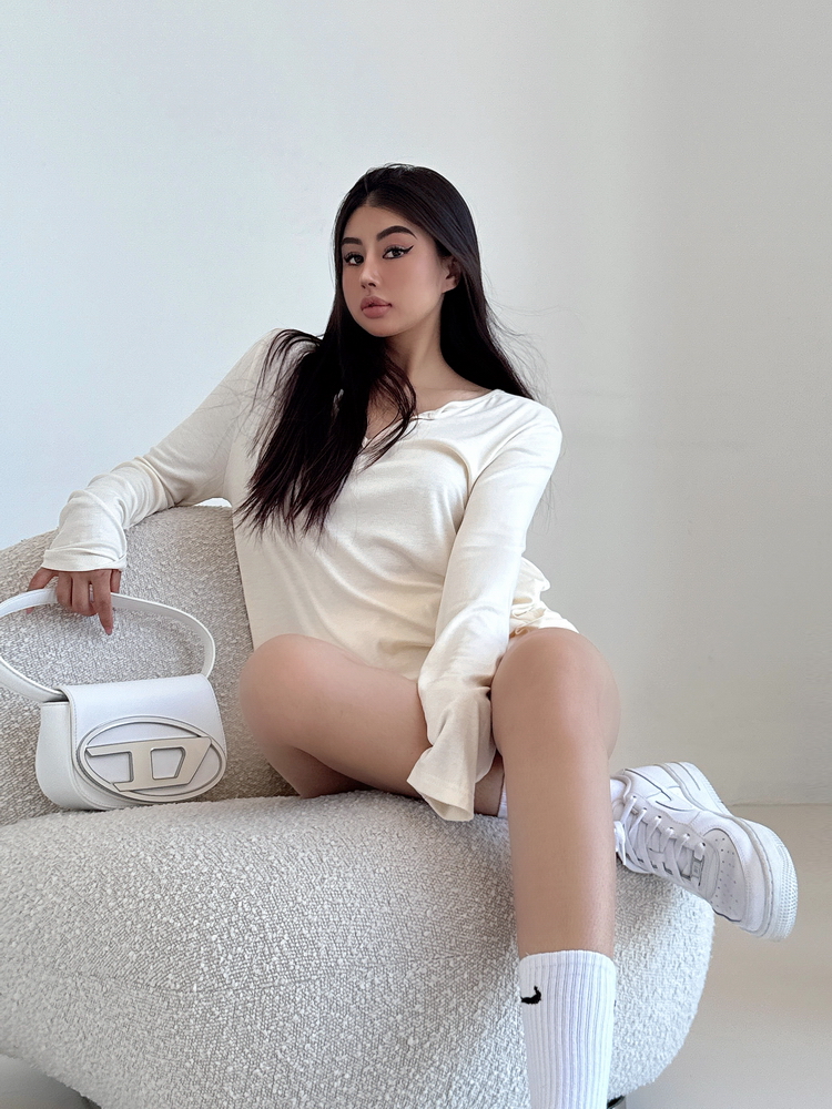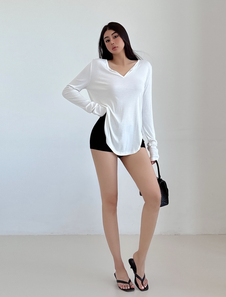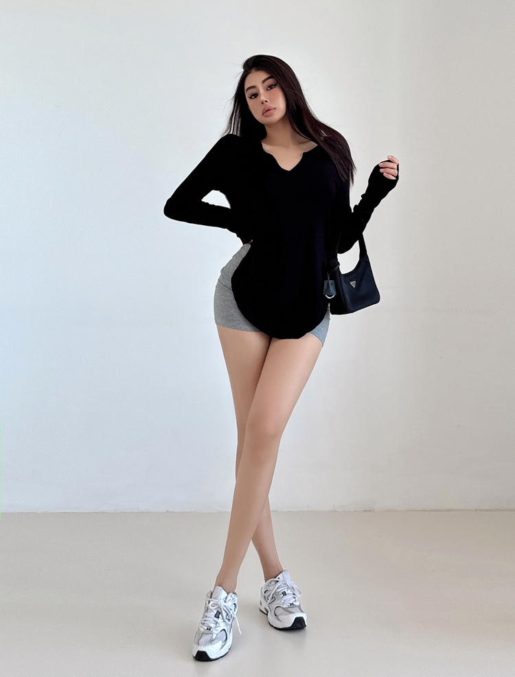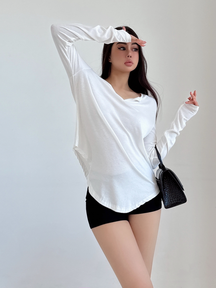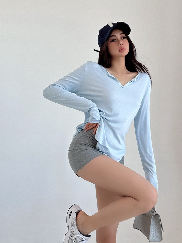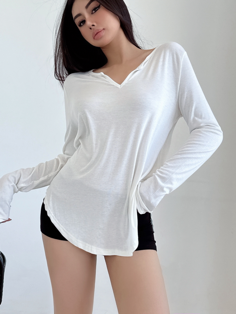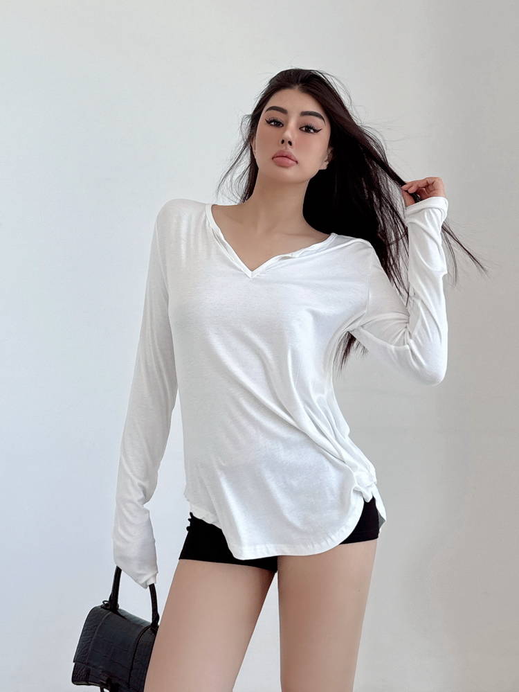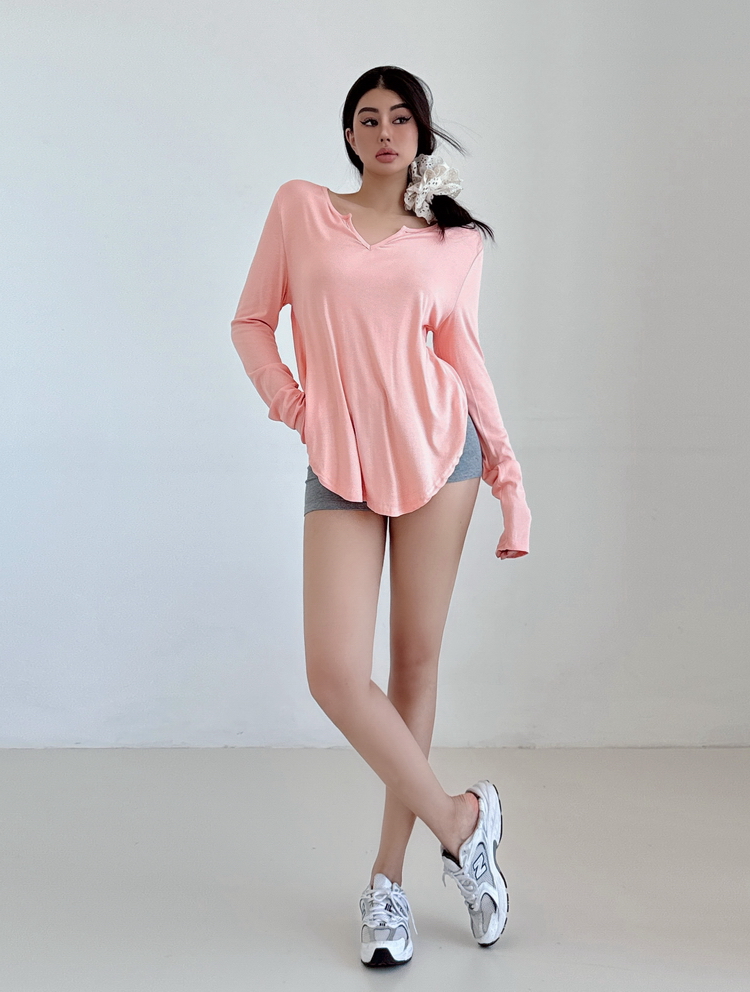 松弛感三個字我說累了 誰說辣妹不能有松弛感 這不就來了 寬松的版型舒服自在 單穿或者作為罩衫穿都OK 小V領更顯臉小 且修飾脖頸線條 ss面膜感真的炒適合日常OOTD