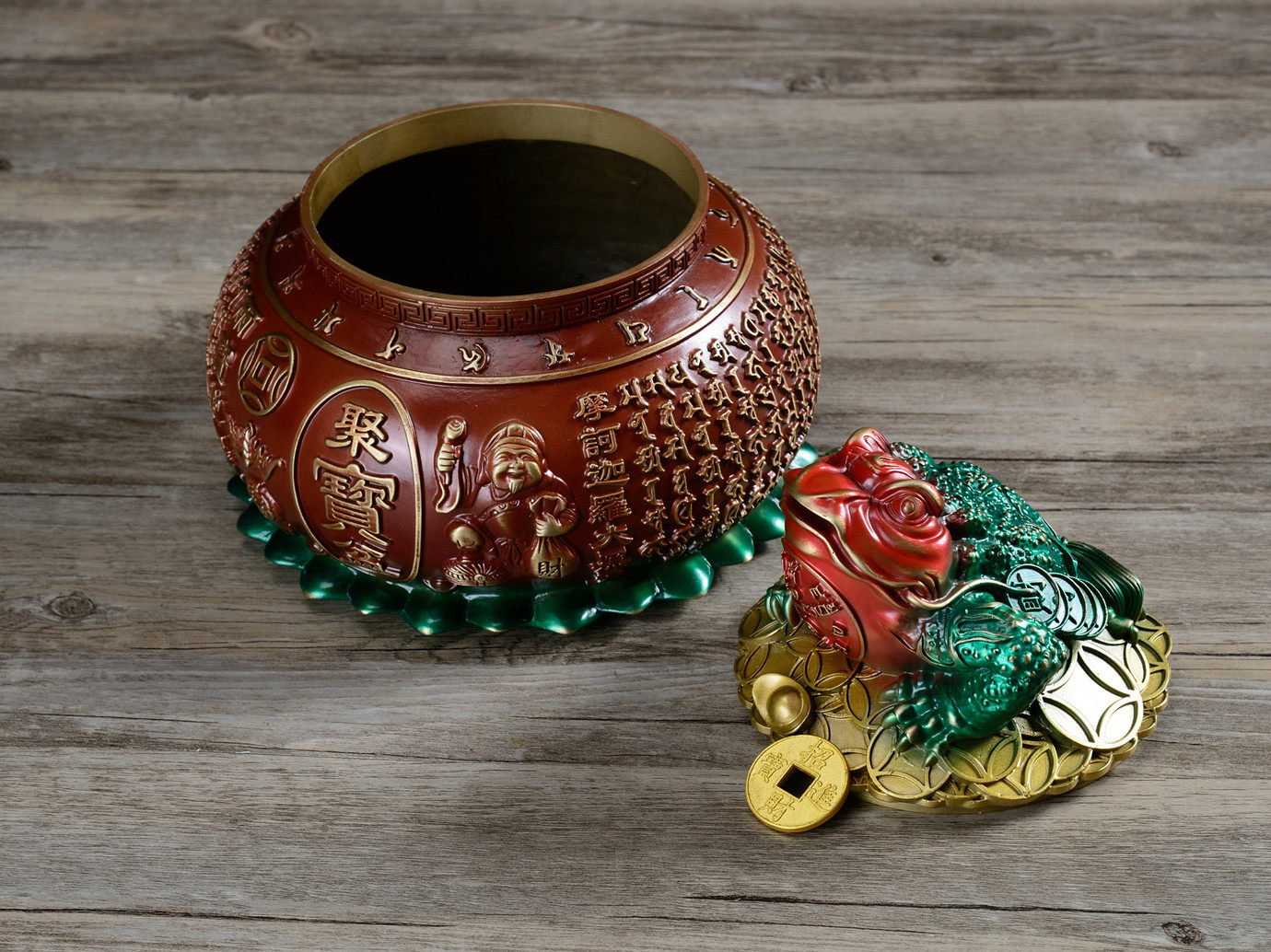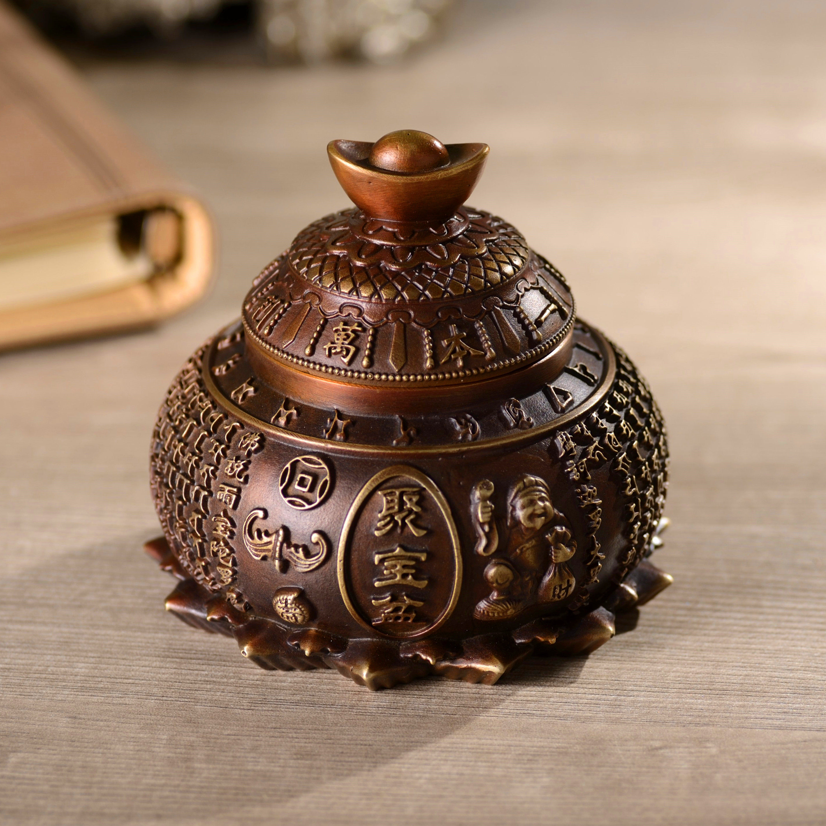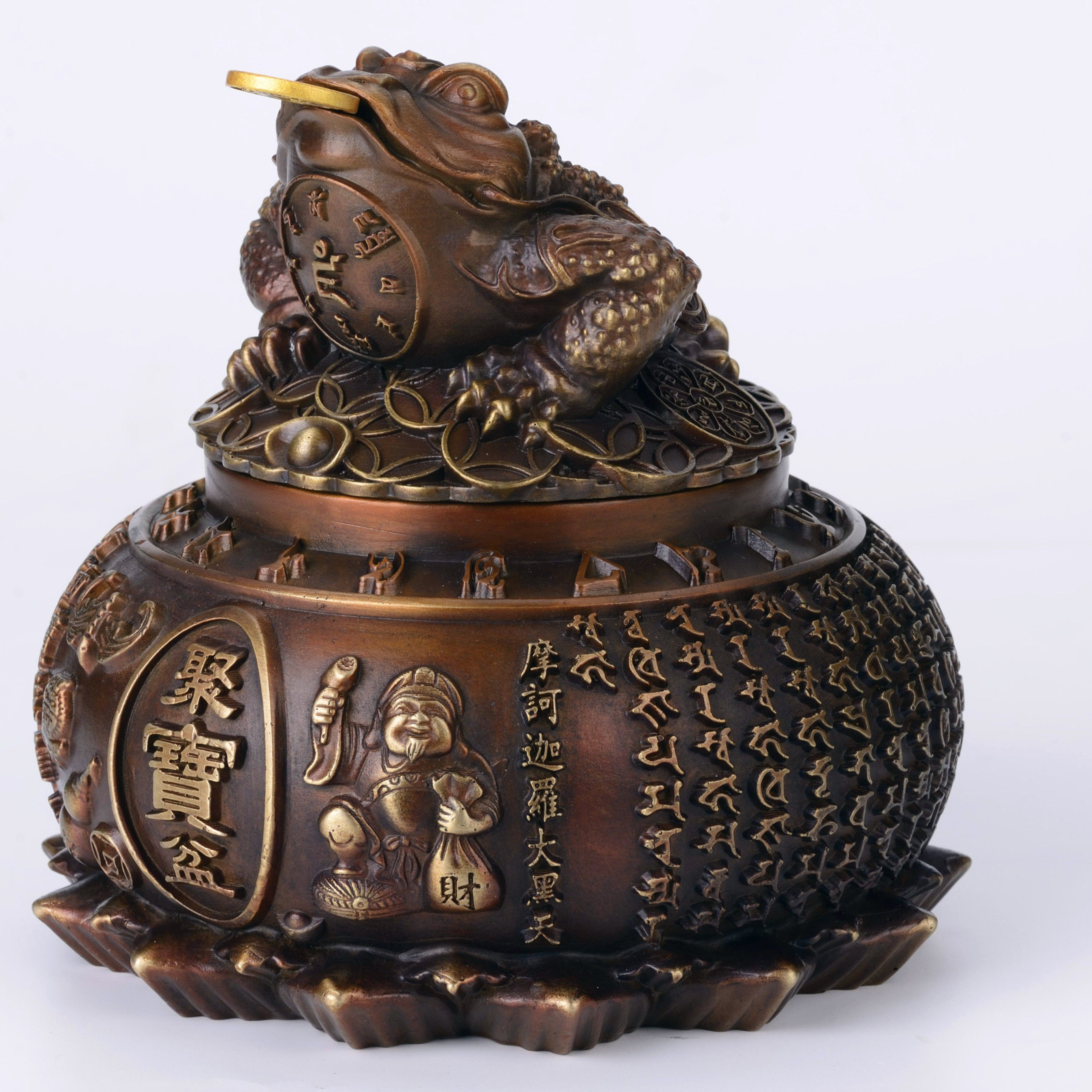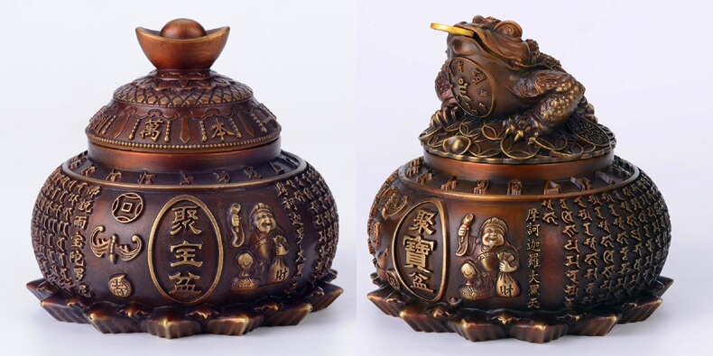 本聚寶盆材質為實心純黃銅,采用古法(失蠟法)鑄造工藝,頂蓋分別有金蟾和寶蓋兩款。 雨寶 、大黑天財神  。有紫銅色、彩銅色和金色三種。贈送七寶石、小元寶、 寶貝乃原創設計,并已在國家知識產權局注冊專利,專利號為:2016306037103,專利產品,品質保證!