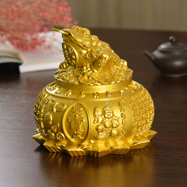 金色聚寶盆外部噴涂納米漆料,確保漆料能長時間不脫漆,不褪色,并可放心清潔.本金色聚寶盆,具有特殊的砂金效果.如果用稍強的光線,如陽光或日光燈之類照射,寶盆就會出現無數閃爍生輝的砂金,流光溢彩,富麗堂皇
