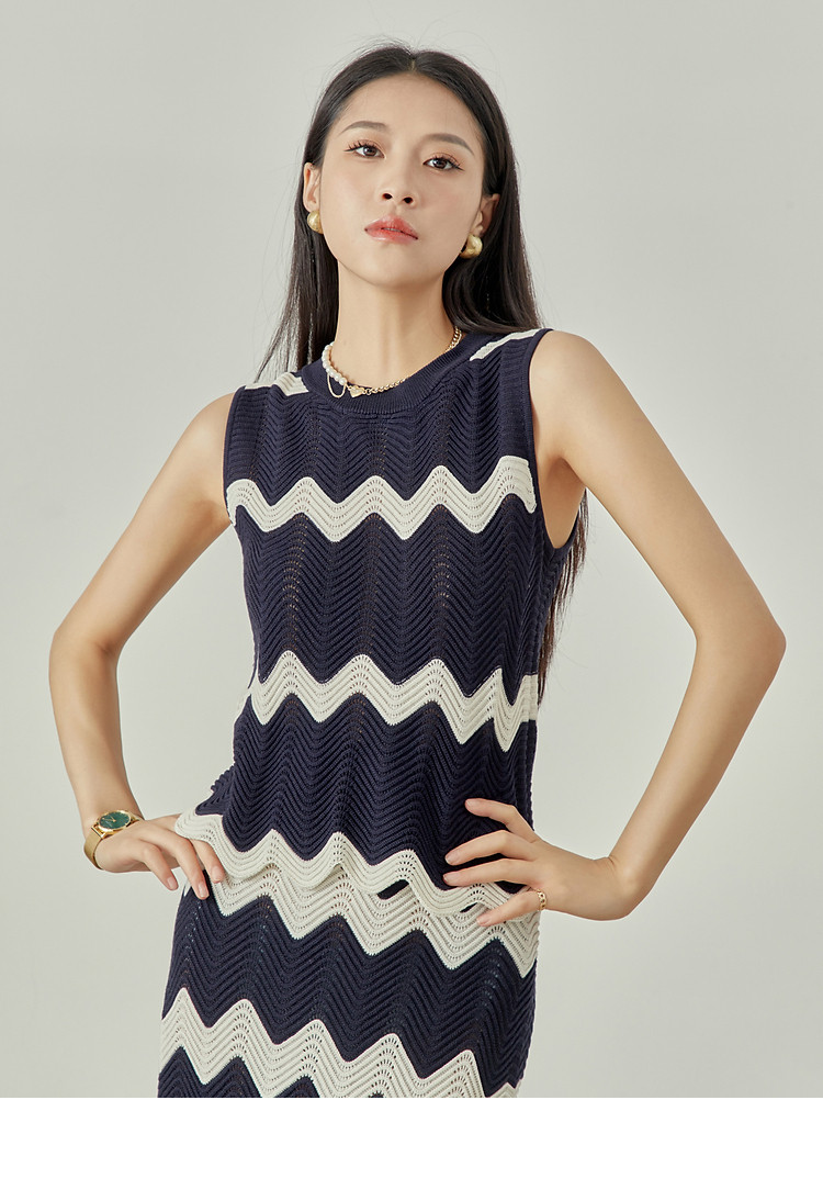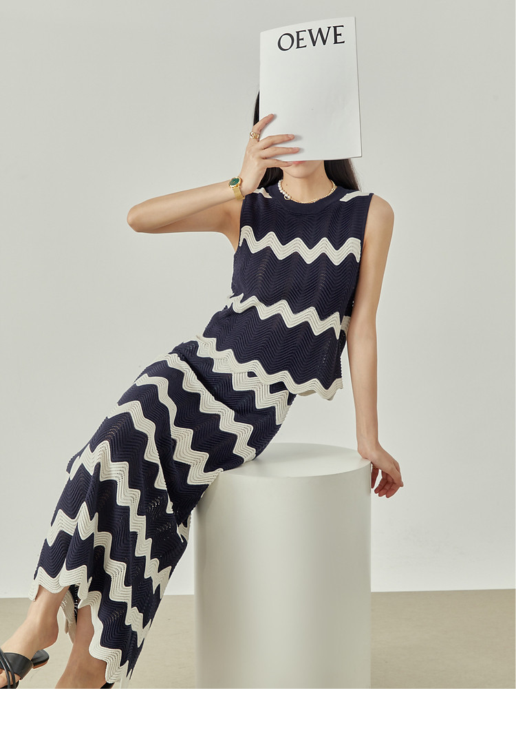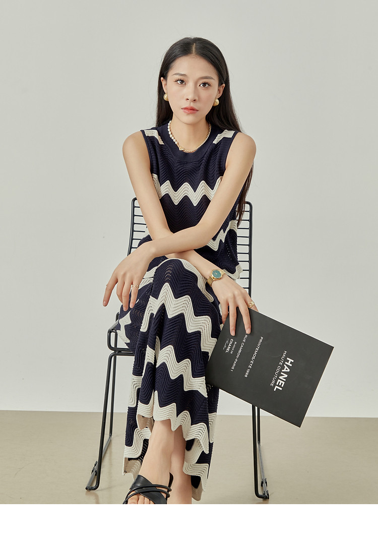 189.00周里物/撞色針連衣裙女顯瘦夏季2024新款無袖氣質休閑長裙子質感