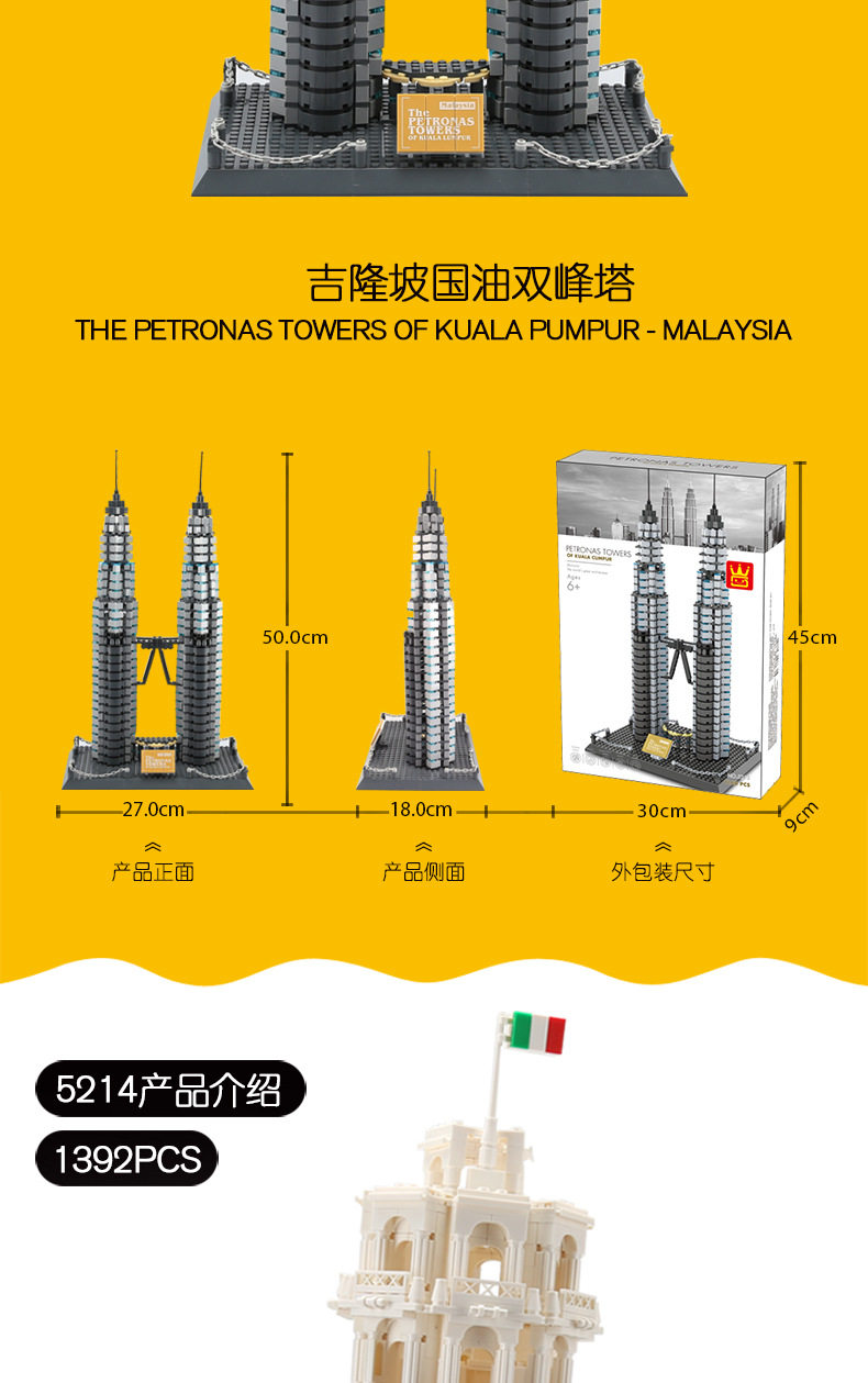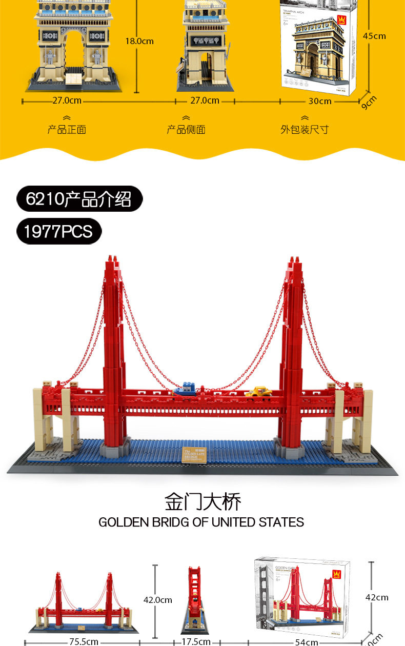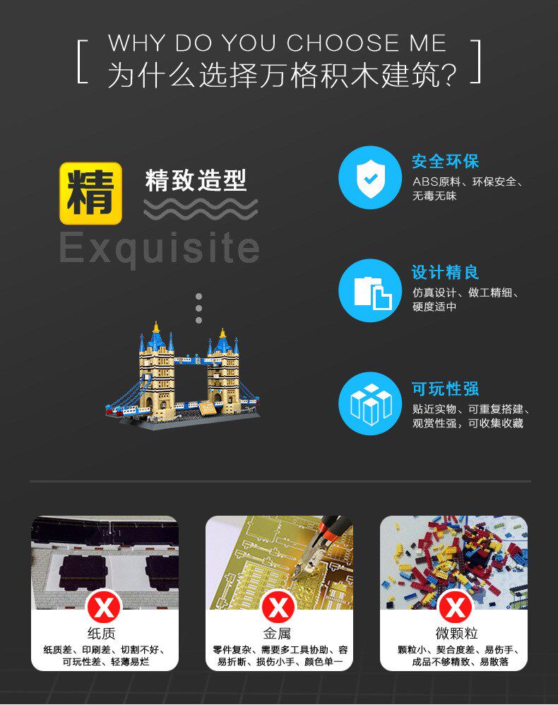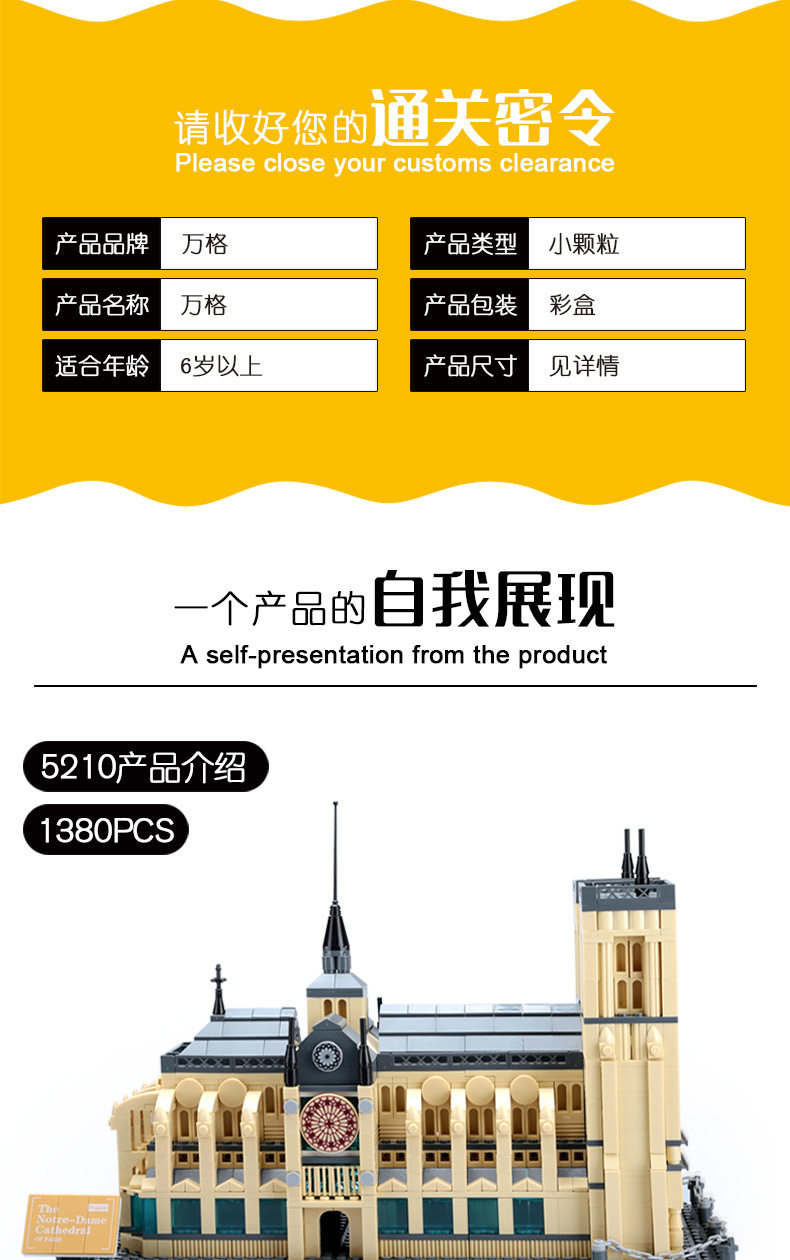 5、本產品為萬格品牌注冊商品,正品保障,建筑系列積木受消費者喜愛。