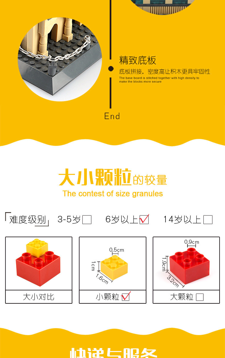 4、此積木建筑為小顆粒積木,正版積木產品一但開盒,影響2次銷售,將不做退貨換貨。