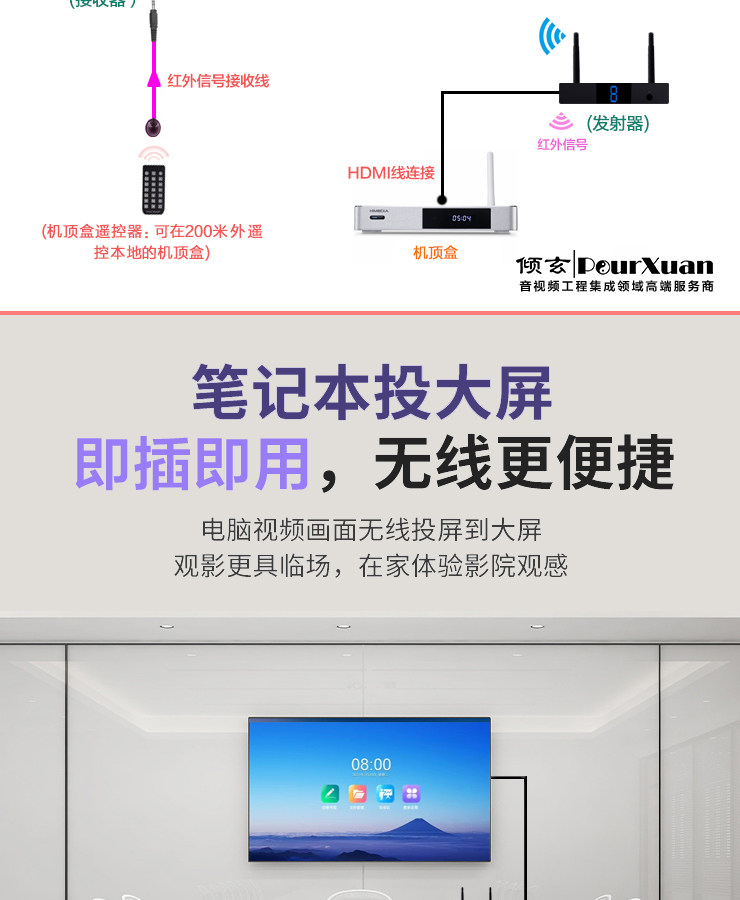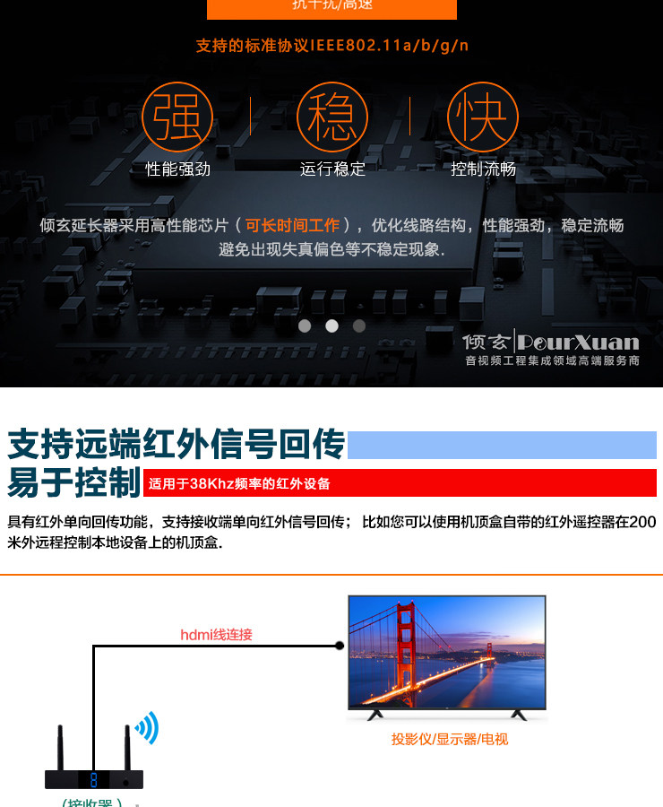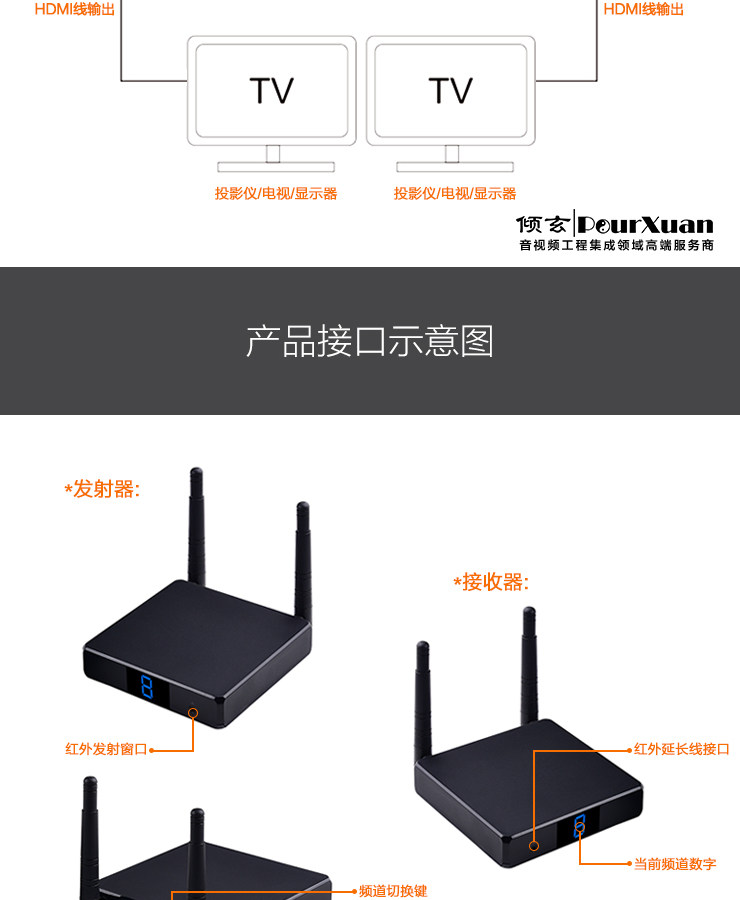 (3) | 支持紅外遙控回傳技術,在接收端就可以遙控控制發射端的播放設備菜單。 | |