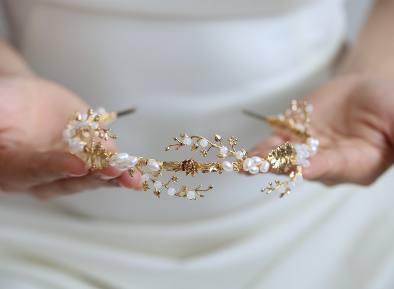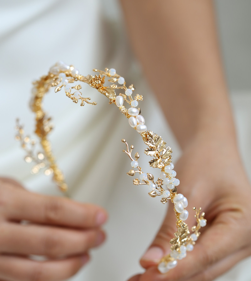 本款是店鋪的原創它的創意是溫暖馨香的晨風吹動新娘頭上美麗的發箍花枝,它隨風輕拂擺動但滋潤的蛋白水晶露珠和天然珍珠的花苞還在陽光下閃耀著耀眼的光輝。它象征著幸福的溫暖馨香永遠留在身邊。