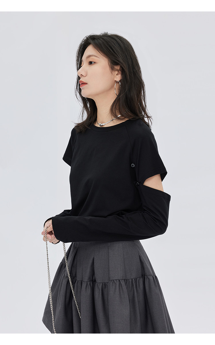 隱藏式袖扣,袖子可拆卸,長袖短袖一件換裝