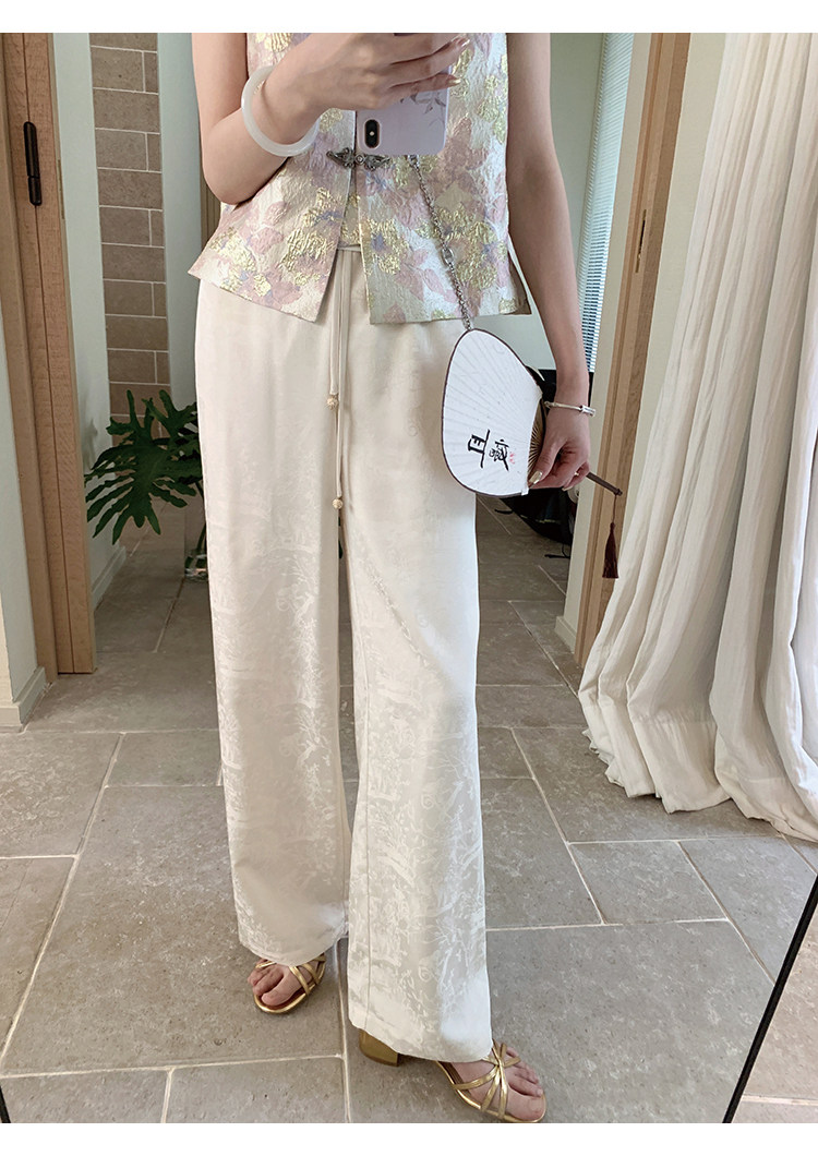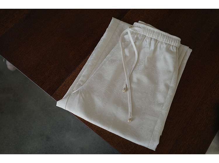 腰頭的部分做了一個抽繩加珠珠吊墜,更給新中式的風格添了一點韻味