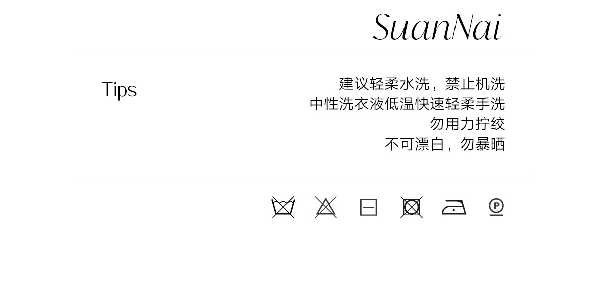建議輕柔手洗或干洗,禁止機洗