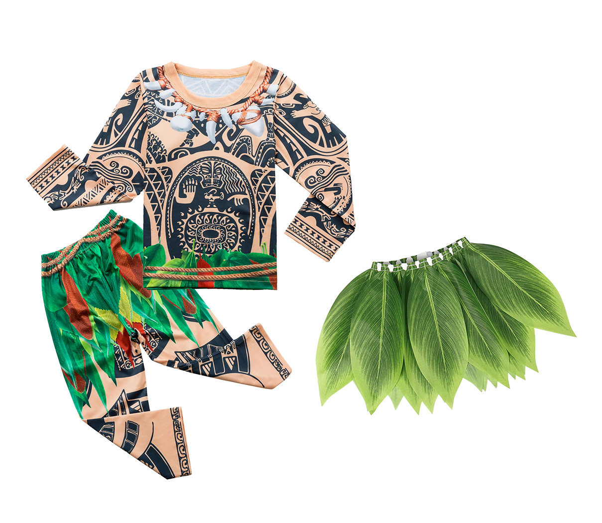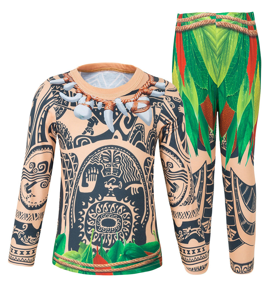 兒童萬圣節裝扮魔法毛伊Maui Cos服裝男孩海洋奇緣紋身樹葉演出服