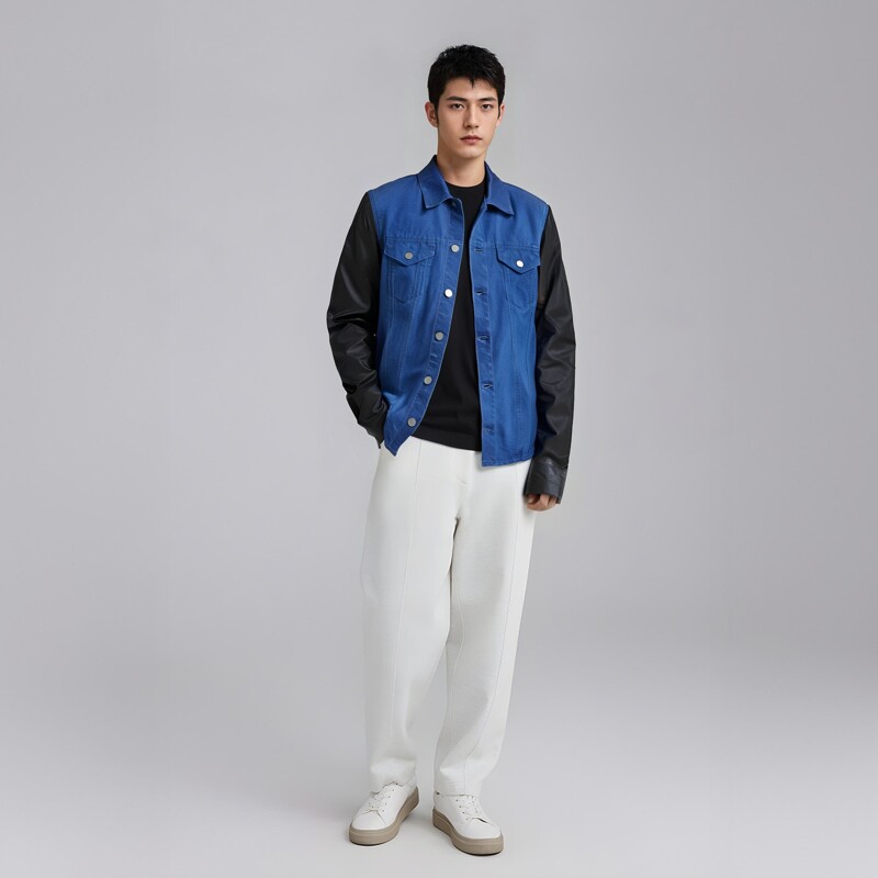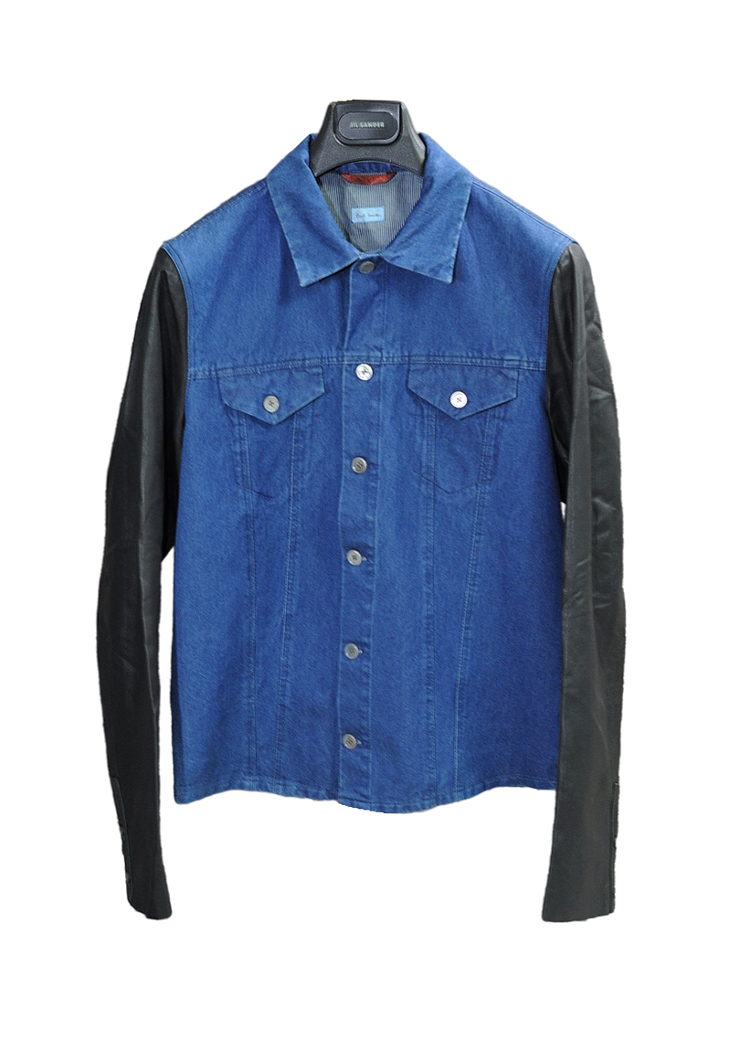 >Paul Smith:2012SS單寧輕洗水 輕薄皮袖拼接簡約設計款夾克