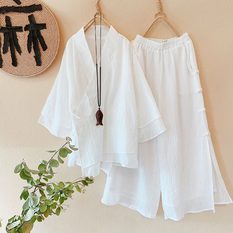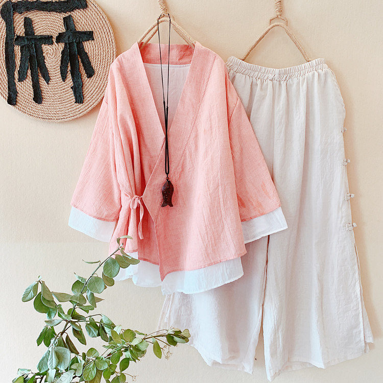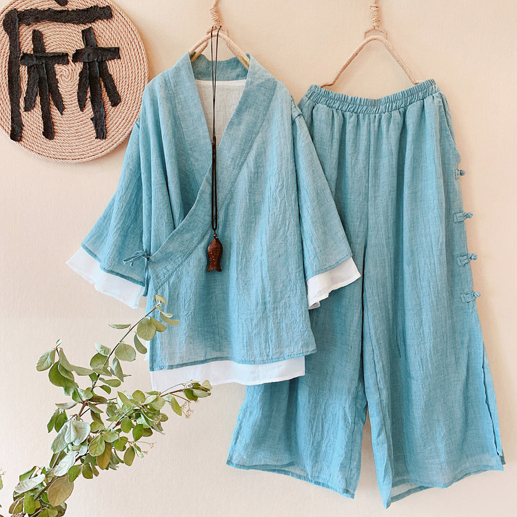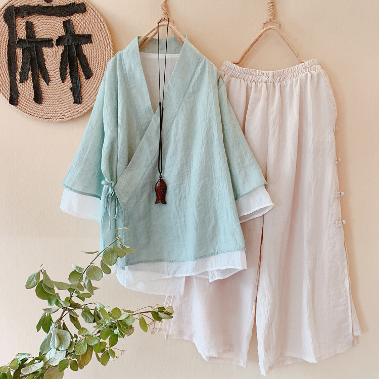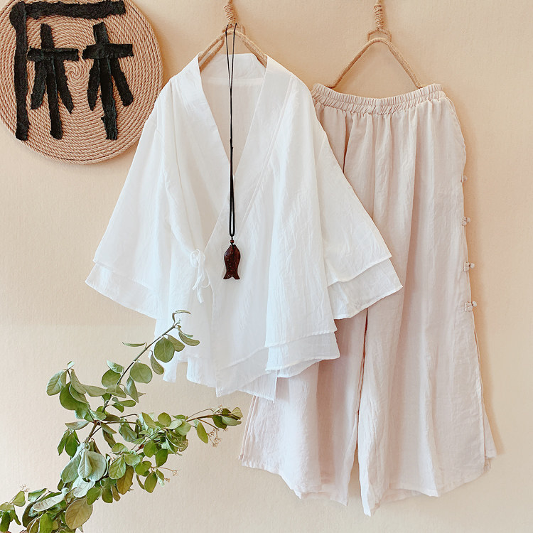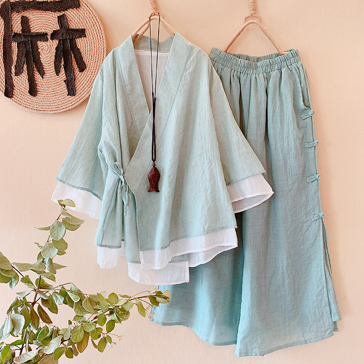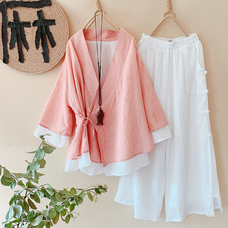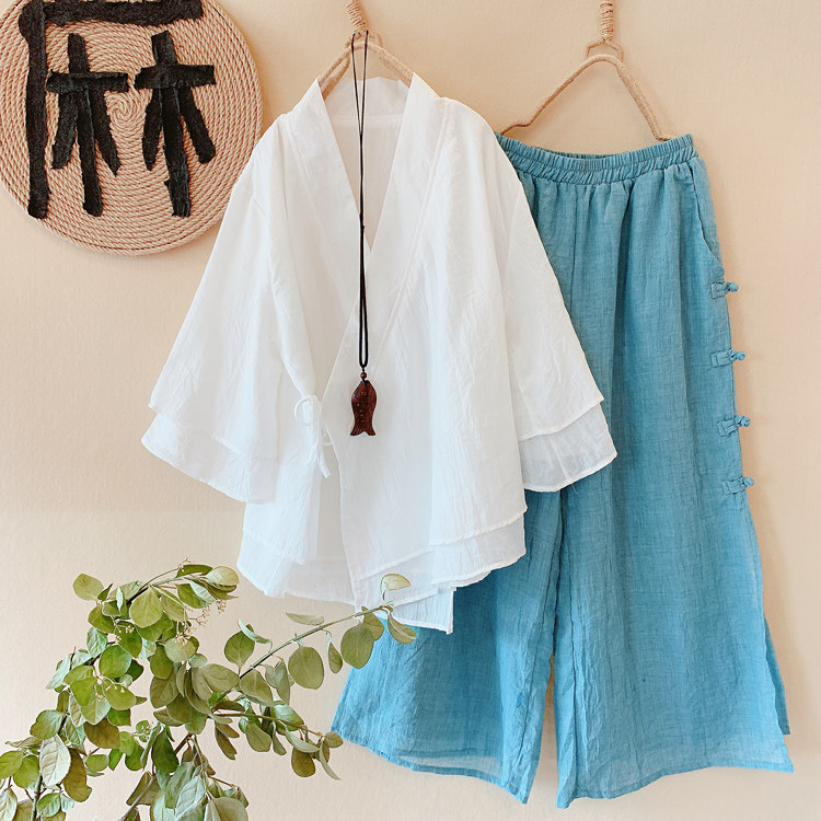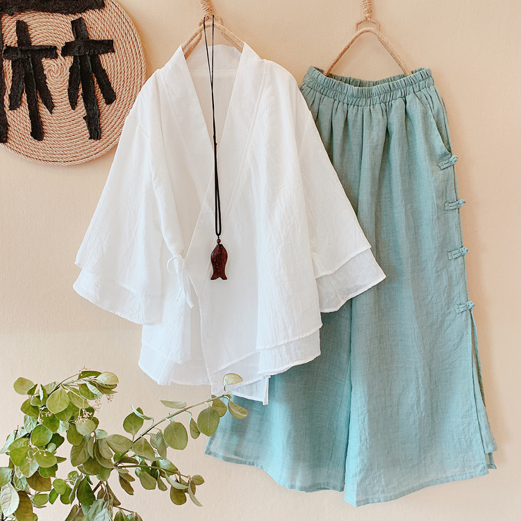 面料/棉麻寶貝尺碼上衣 肩寬41 胸圍108 腰圍100 袖圍40 袖長38 衣長61 下擺106褲子 腰圍58-90 臀圍118 大腿圍68 前襠33 褲長85 褲口70 (以上尺寸抽樣量取,允許有1-3cm誤差)不包含項鏈內搭和其他配飾哦因拍攝水平有限,和每一臺電腦顯示器不同,有點色差是難免的哦。