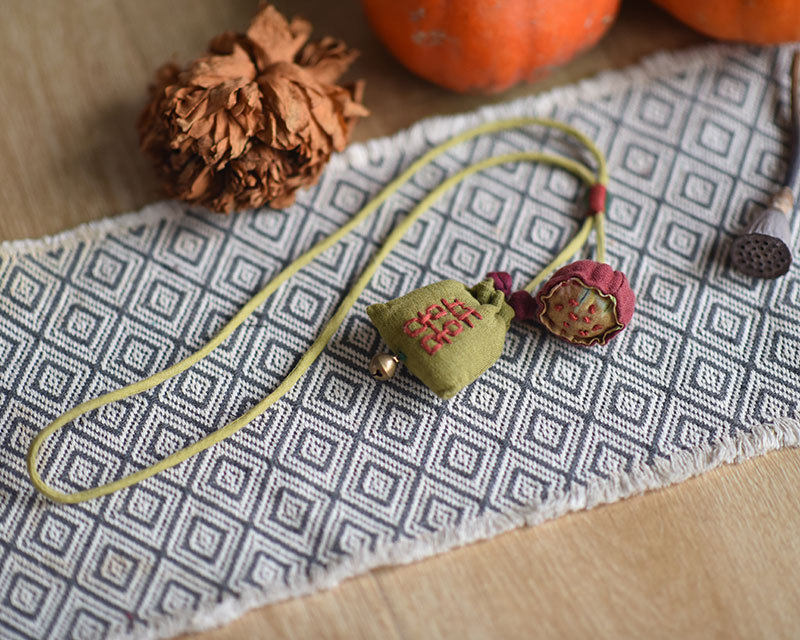 純亞麻手工蓮蓬掛飾傳統手工繡線 盤扣+復古小鈴鐺項鏈周長88cm 抽樣手動測量,可能存在2-3cm的誤差請知悉因各人身材體型/風格喜好/搭配不同,上身效果呈現不一,模特圖僅作參考模特 身高160cm 體重55kg