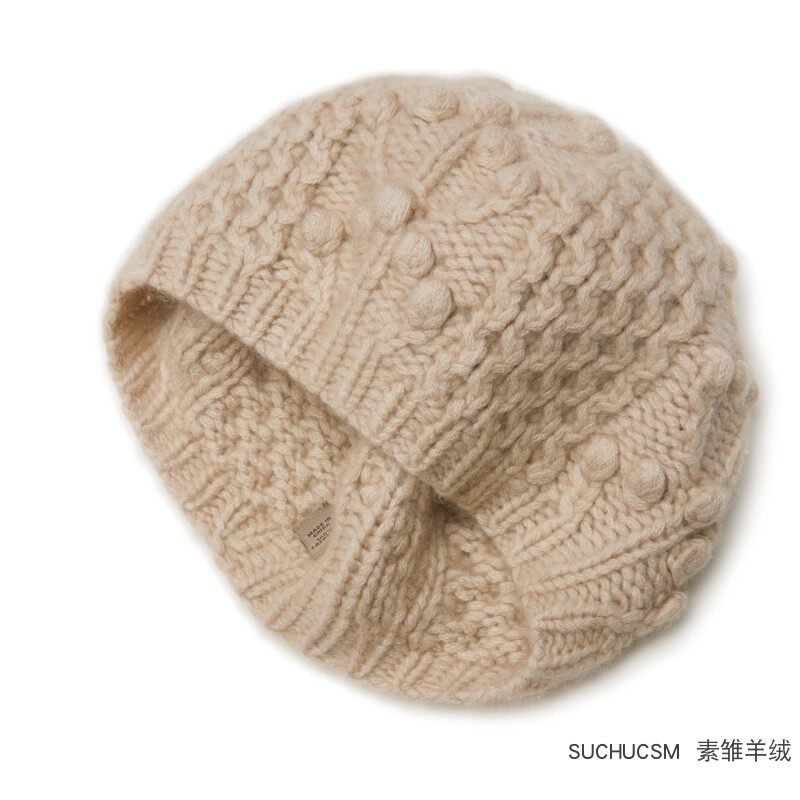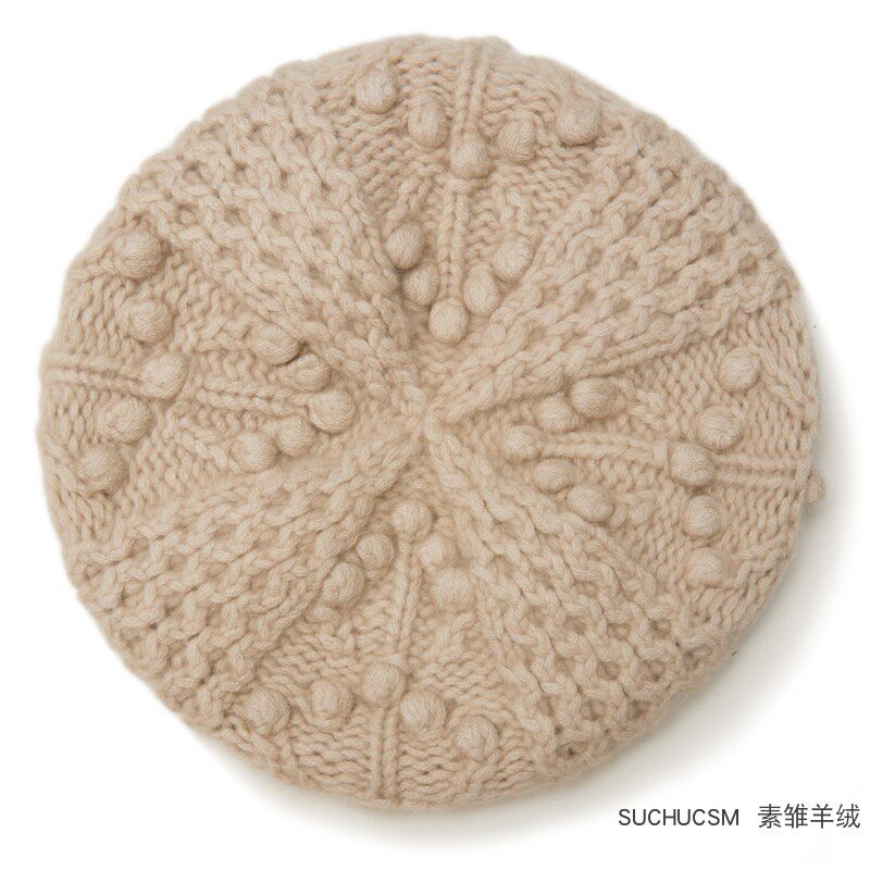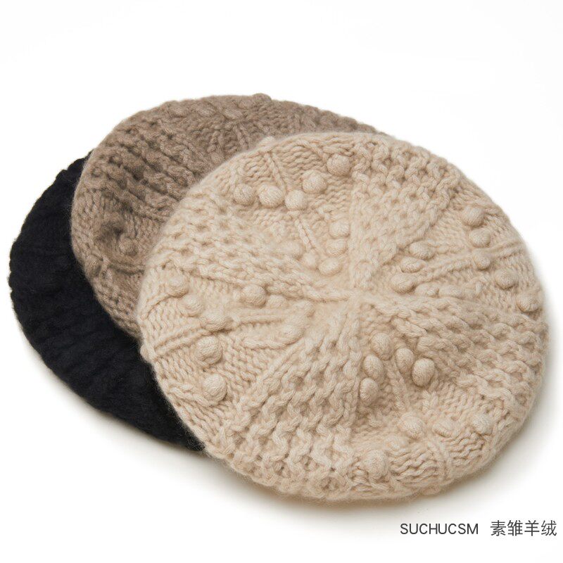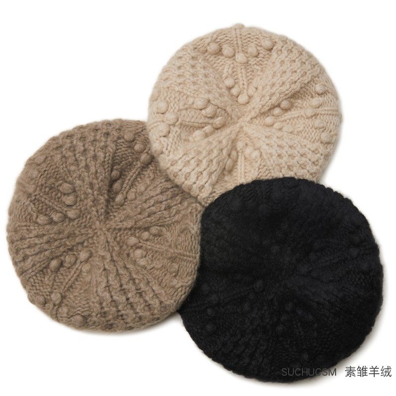 美翻天!純手工立體編織純羊絨貝雷帽女秋冬針織保暖