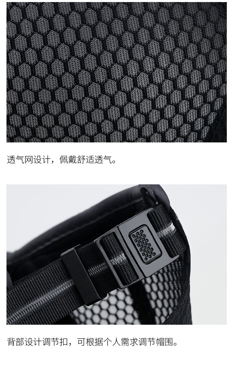 本款帽檐長度8厘米,帽圍55-60厘米可調節,重量68克左右